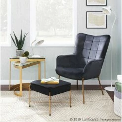Best Sale โ๏ธ Arm Chairs LumiSource Izzy Contemporary Velvet Lounge Chair And Ottoman Set โ๏ธ