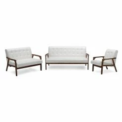 Budget ๐ Arm Chairs Baxton Studio Venza Walnut Wood Black Faux Leather Lounge Chair ๐