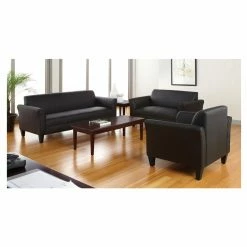 Create a seating area that is as comfortable as a home living room with the help of the Alera Reception Lounge Series Leather Club Chair – Black. This reception area chair is amply padded and has a classic look with flared arms and a contoured tight seat and back design. Upholstered in sumptuous, soft touch black leather, the chair matches any color palette with ease. Completing the design are four sturdy tapered wood block feet finished in black to blend in with the upholstery.