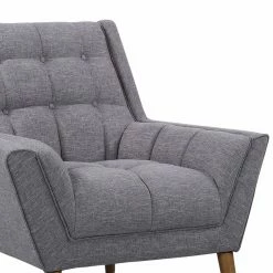 Settle into the Armen Living Cobra Club Chair for a comfortable place to relax that’s also super stylish. Artful lines and a retro flair lend plenty of dΓ©cor-enhancing appeal to this mid-century modern club chair. Button-tufted squares, flared-out arms, and tapered walnut wood legs give this fabric-upholstered chair a chic silhouette that’s smart and distinctive. Offered in your choice of available color option, this club chair pairs with other pieces in the Cobra collection for a coordinated look.