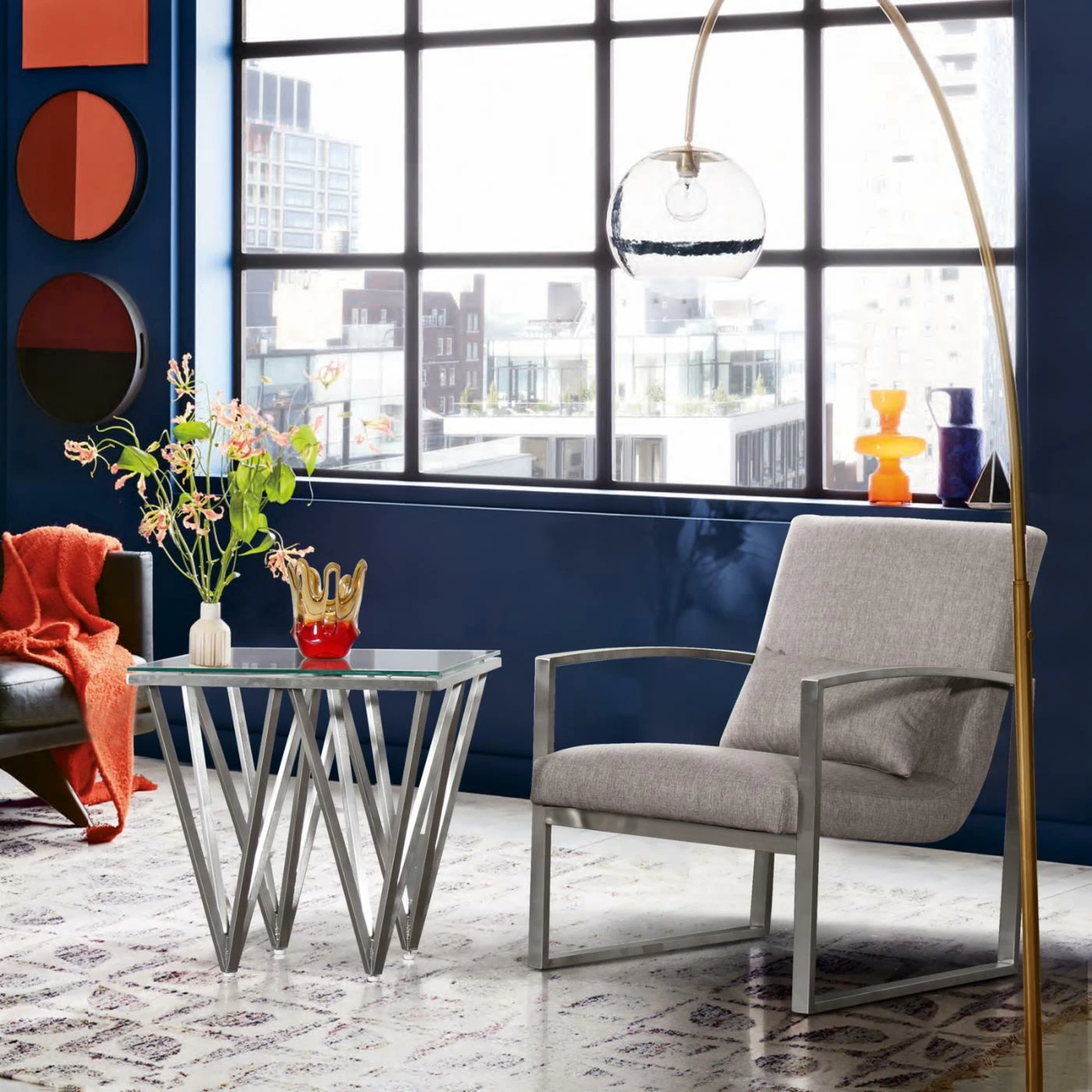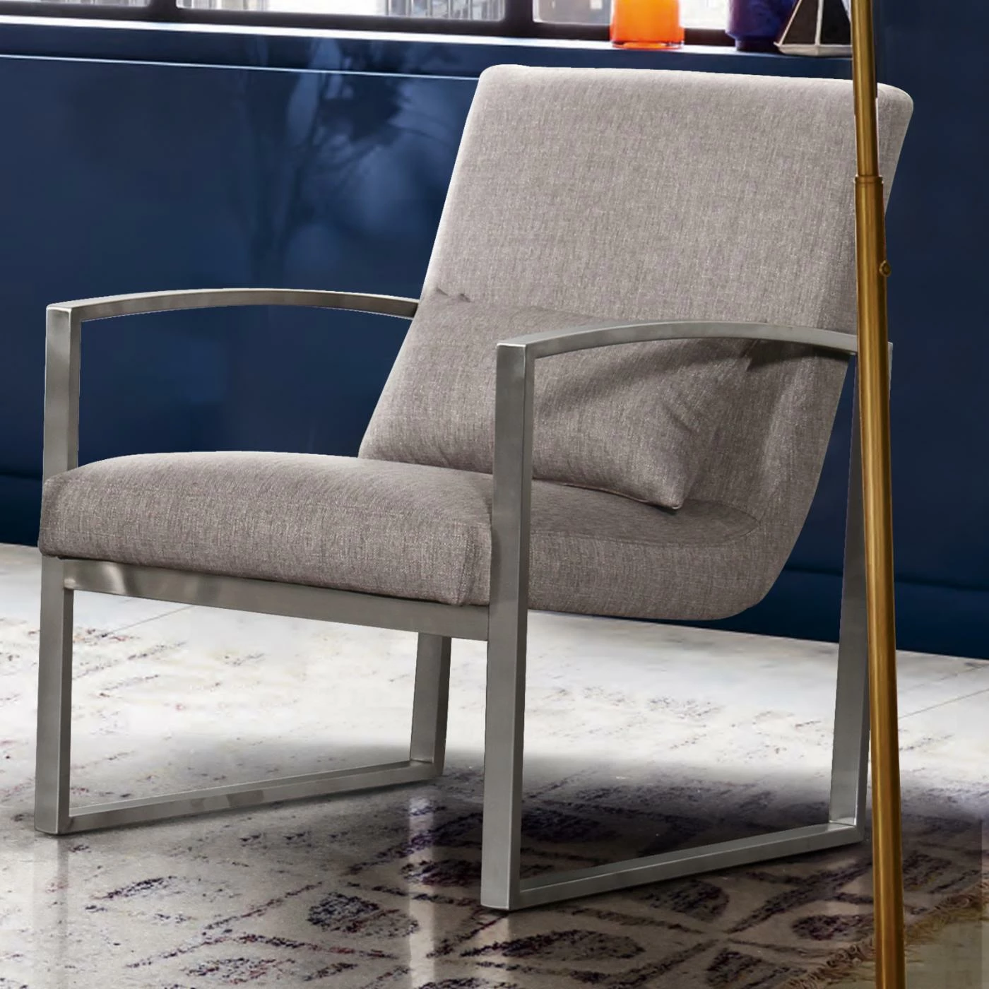 The modern profile and clean lines of the Armen Living Leonard Accent Chair make it a striking addition to any room in your home. Its gray linen upholstery and brushed stainless steel frame and legs complement most color schemes, allowing this accent chair to easily blend with your existing furnishings. The included throw pillow completes the look.