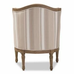 Inspired by casual Provencal French designs, the Baxton Studio Charlemagne French Accent Chair is a true treasure. This classic French beauty features graceful curves, contouring, and turned legs made of cedar. The wood is finished in brown oak with white distressing to accent each details. Its blended fabric upholstery comes in a traditional striped pattern in select color options. Stylish details include the welted seat cushion, tight back, and rosette block at the top of the turned legs.