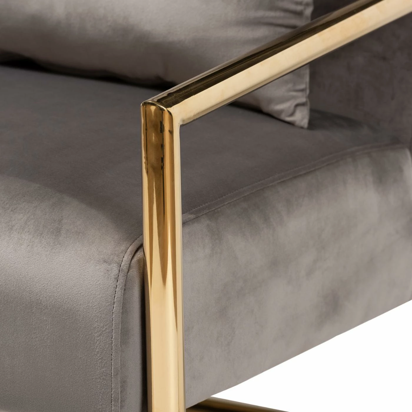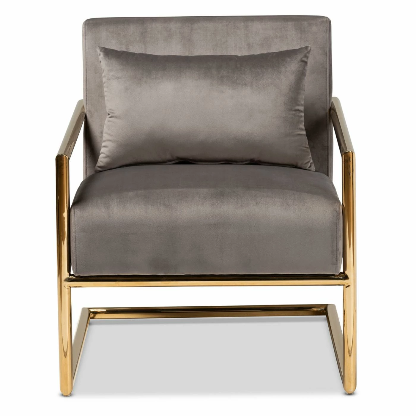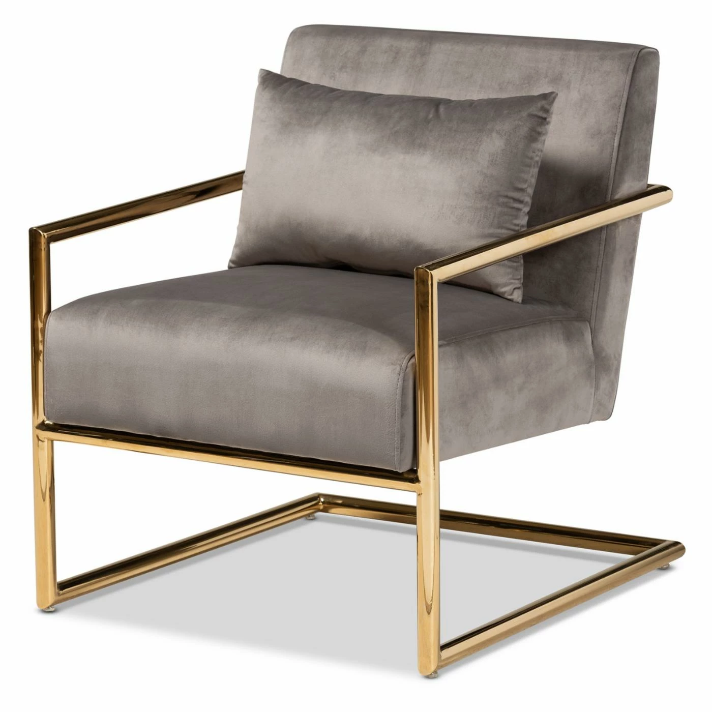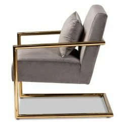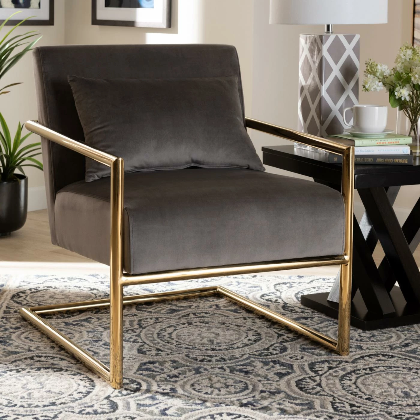 Bring sleek, modern style to your living room with the Baxton Studio Mira Velvet Upholstered Lounge Chair. This lounge chair features a metal cantilever base in a glam gold finish. The deep, padded seat cushions are upholstered in luxe polyester velvet, giving the piece a subtle sheen. A matching accent pillow is included. Choose from available fabric colors to find the Baxton Studio Mira Velvet Upholstered Lounge Chair that works best for your home.