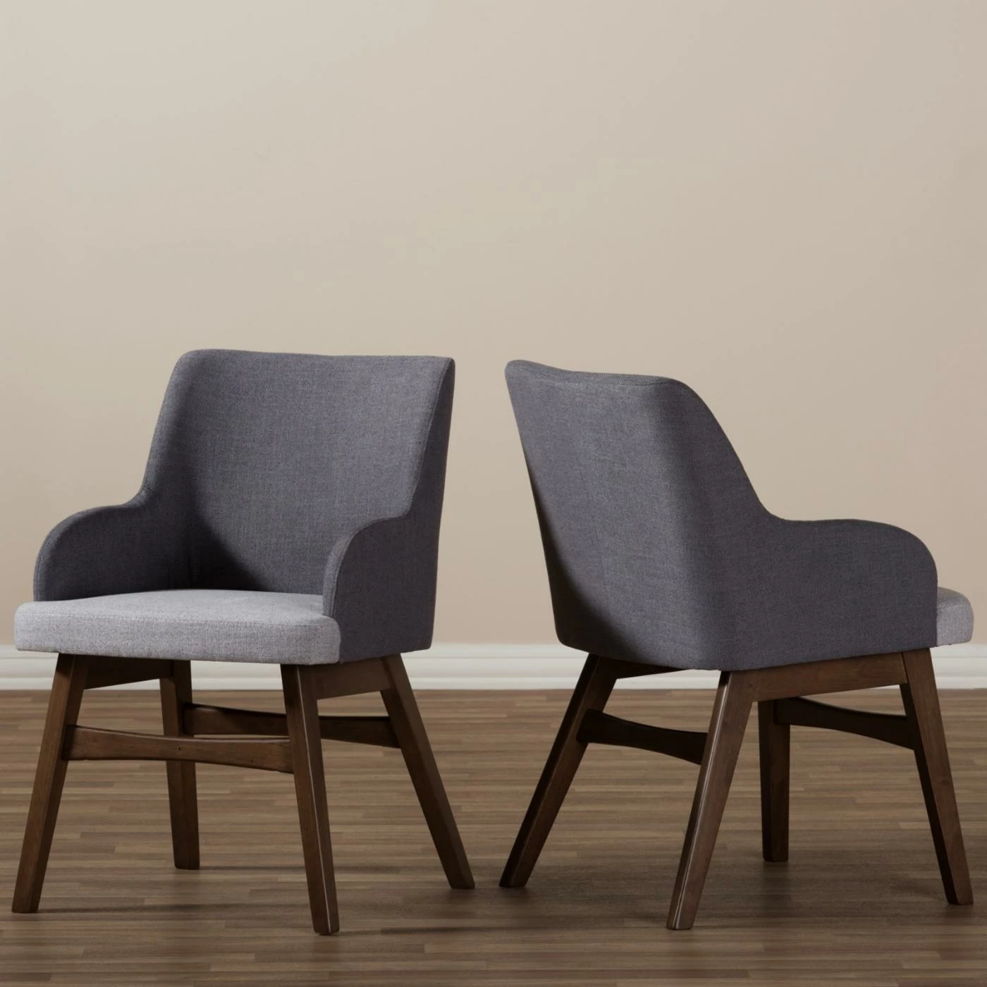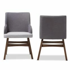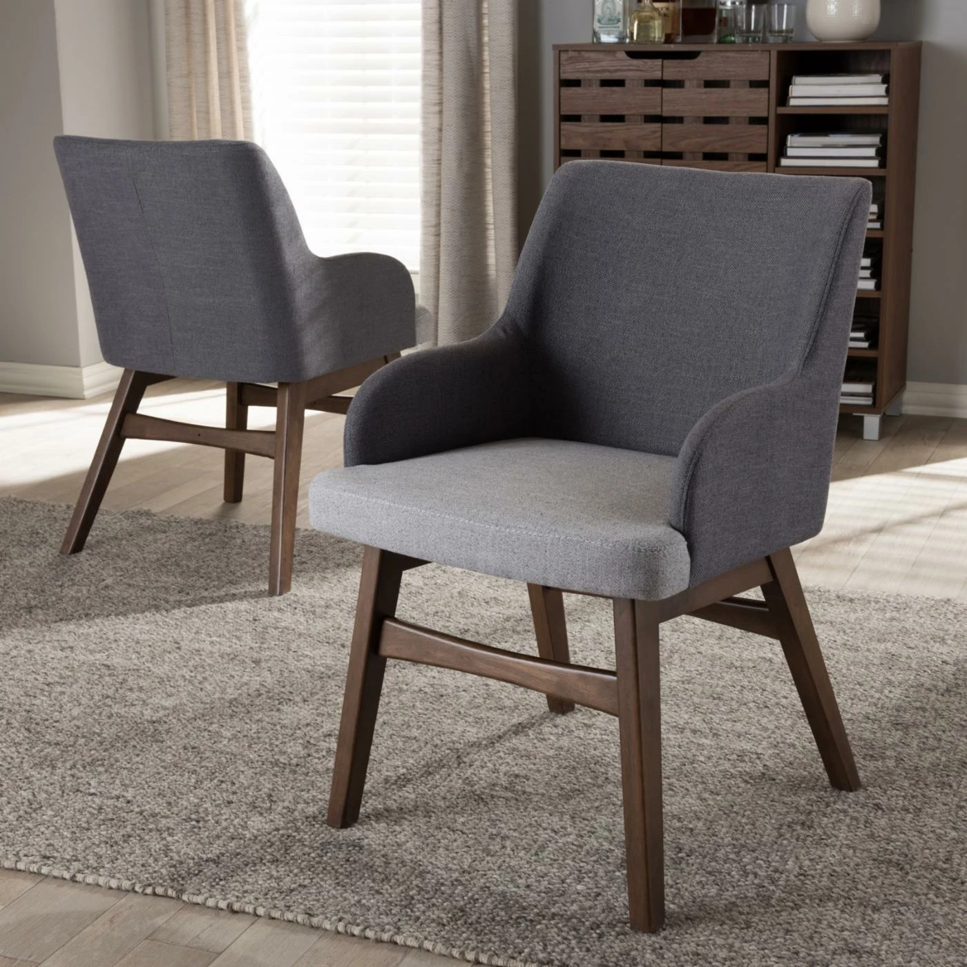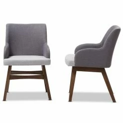 The mid-century modern design and grand comfort of the Baxton Studio Monte Fabric Armchair – Set of 2 make this set perfect at either end of your dining table. The chairs boast Scandinavian-inspired solid rubberwood legs in a walnut finish. Rounded arms and the contoured backrest feature charcoal gray upholstery while the generous seat is in a contrasting light gray.