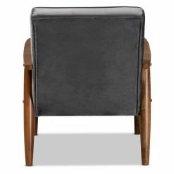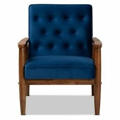 Bring sleek, modern style to your home with the Baxton Studio Sorrento Velvet Tufted Lounge Chair. This lounge chair features a wood frame in a warm walnut finish. The angled legs add to the chair’s mid-century silhouette.