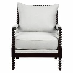 Invite timeless elegance and comfortable seating into your library or living space with the Coast to Coast Newcastle Accent Arm Chair. Its traditional spindle framework graces the back, arms, and legs of this arm chair. For contemporary flair, thick cushions are upholstered in white and welted for a tailored look.