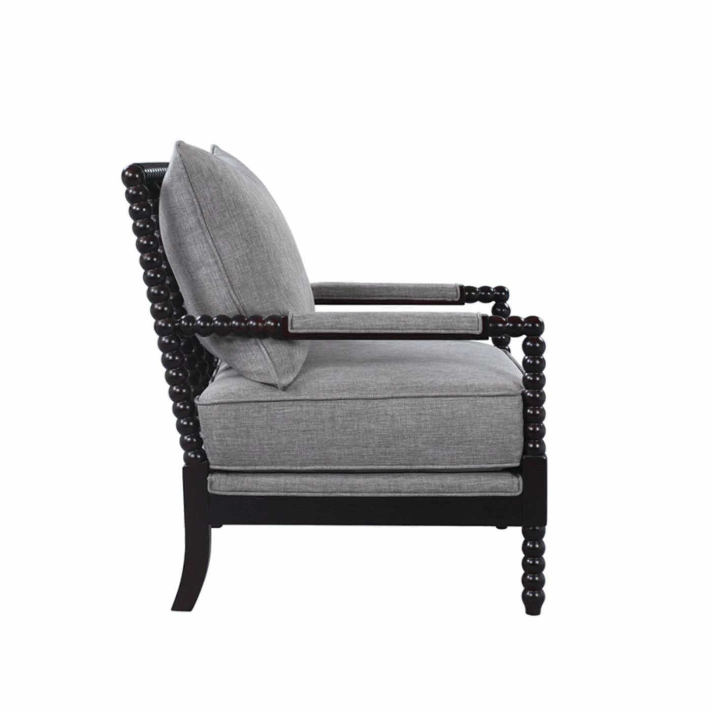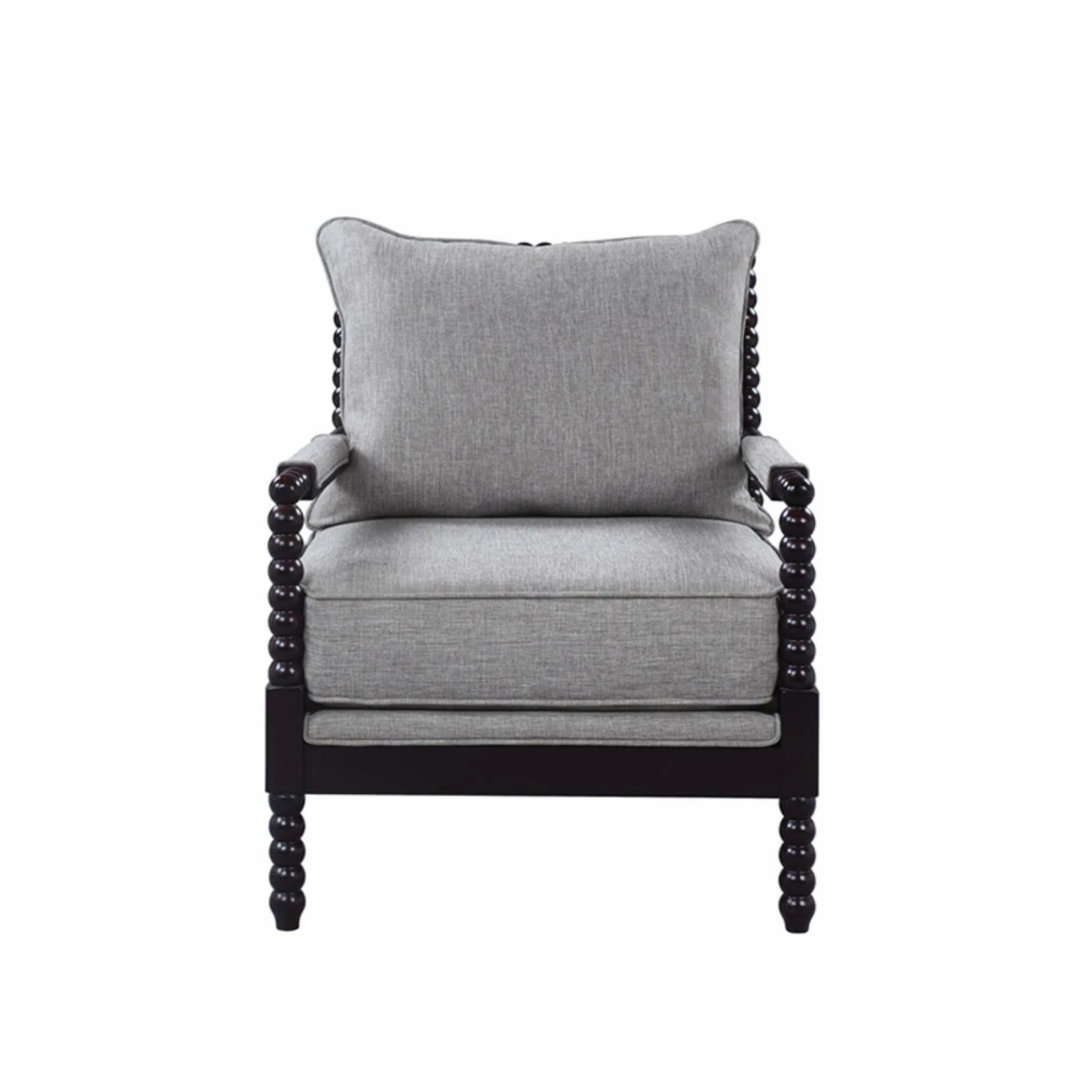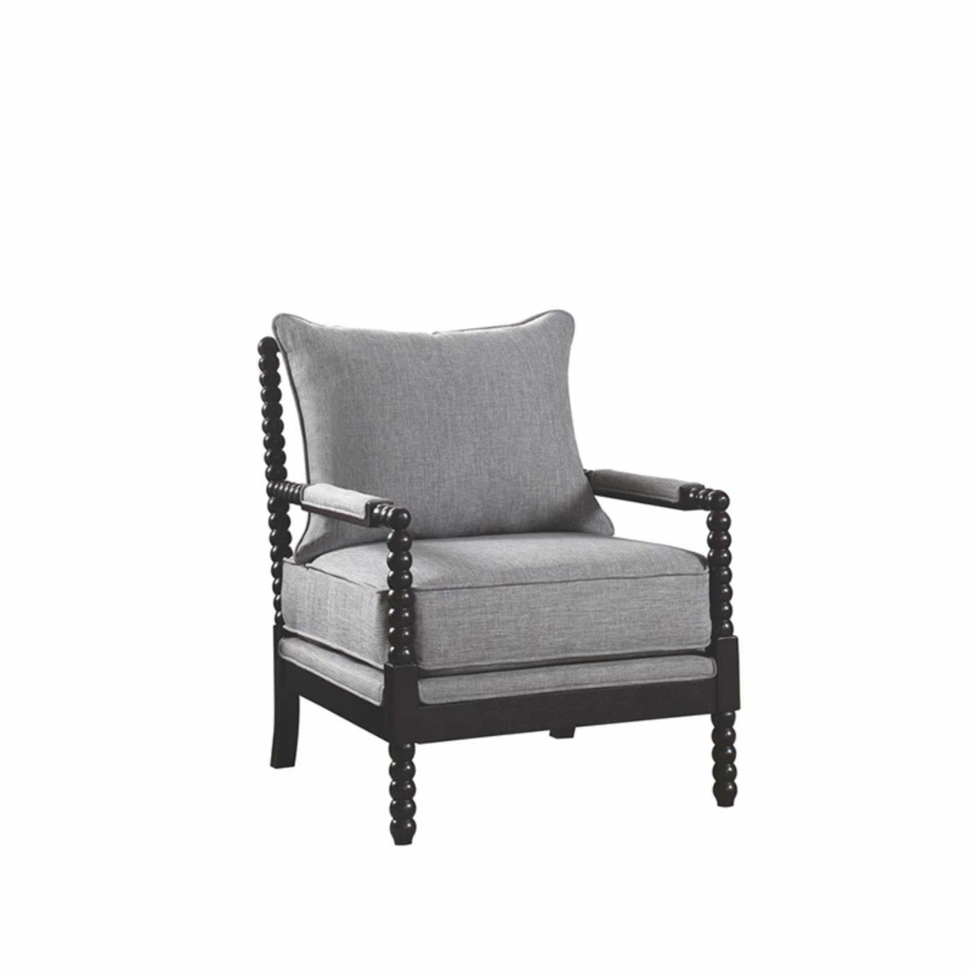 Add a dramatic look to any room with the Coaster Furniture Ball Detail Accent Chair featuring traditional, ornately turned rails. A rich brown finish adds sophistication to each turned detail. Soft fabric upholstery with piped trim adds contemporary charm.