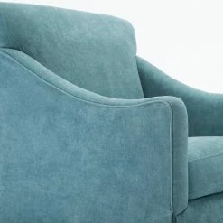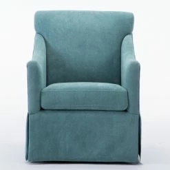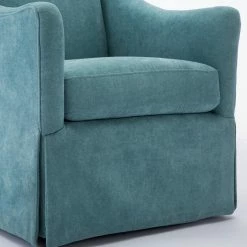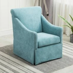 The Comfort Pointe Georgia Swivel Arm Chair adds a modern flair to a classic style. With its slender arms, pleated skirt, and shirted design, this arm chair has a crisp, tailored look you’ll love. The easy-to-clean, high wearability polyester fabric and hardwood and engineered wood frame makes this chair a great addition to any high traffic areas. It’s featured in your choice of available colors to complement any home handsomely. A swivel base finished in black completes the comfortable design.