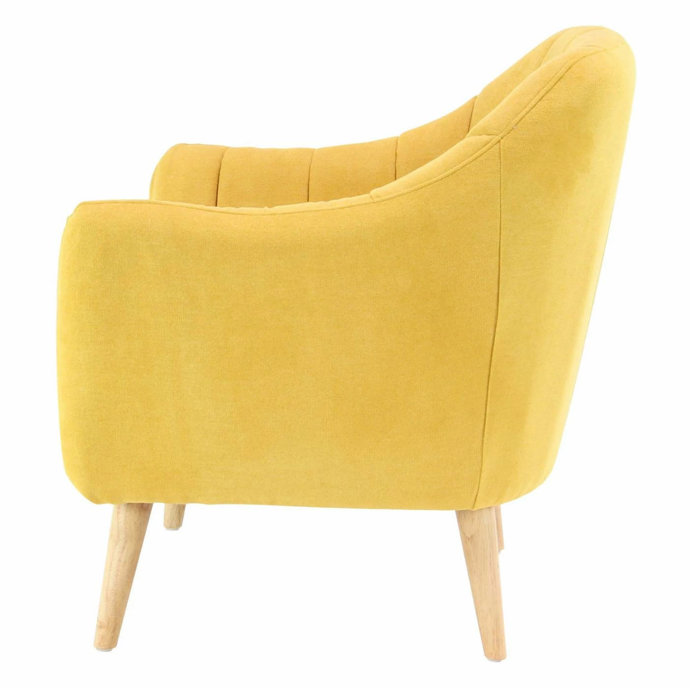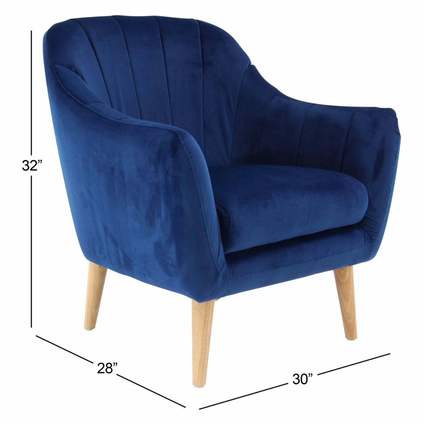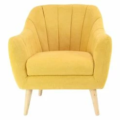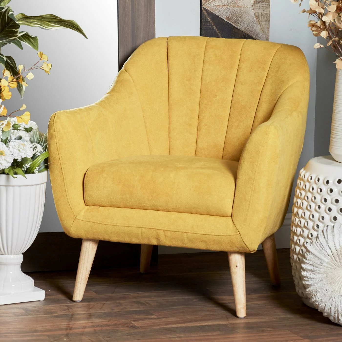 The DecMode Modern Wood and Fabric Cushioned Armchair is a plush and cozy addition to your living space or bedroom. Vertical seaming highlights the plush foam padding of this armchair. It rests on a sturdy frame with tapered, angled legs. The soft polyester upholstery is offered in your choice of available color.