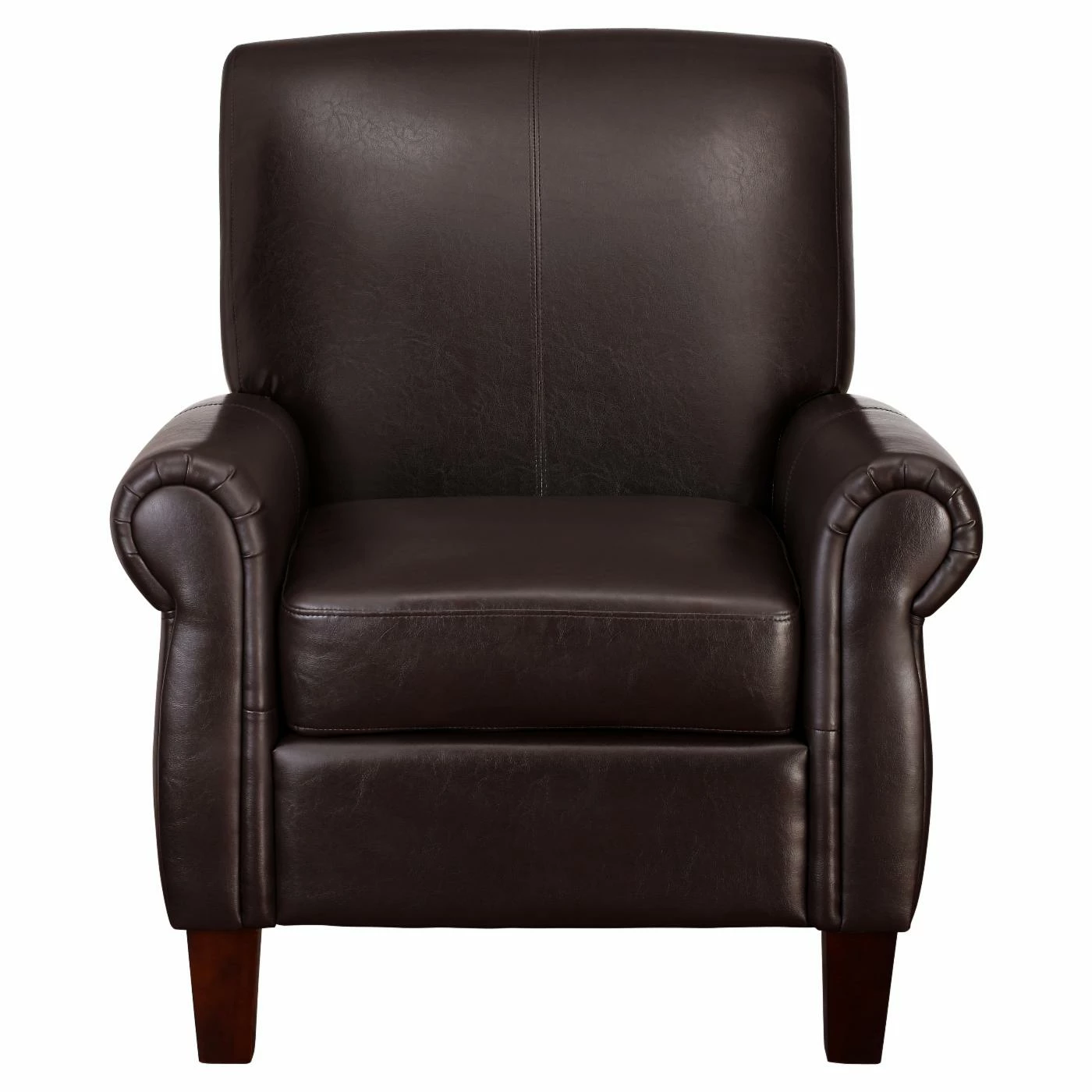 Classic lines and elegant faux leather upholstery make this Dorel Living Faux Leather Club Chair a distinguished addition to your living room, library, or bedroom. This club chair features a rolled back and arms. High-density foam cushions and a sinuous spring foundation offer comfortable support.