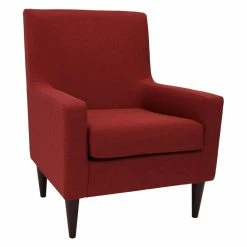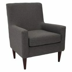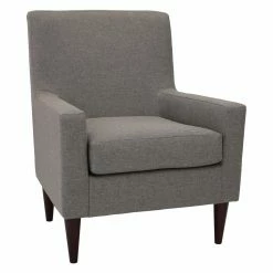 Modernize any room with the Fox Hill Emma Solid Arm Chair. This armchair offers a sleek silhouette while catering to your comfort. The woven upholstery fabric is offered in several soothing hues (subject to availability.) Tall tapered legs round out this chairโs appearance. Made in the USA.