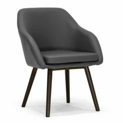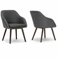 The classic mid-century bucket chair goes sophisticated in the Glamour Home Adaya Arm Chair – Set of 2. The classic lines of this chair include integrated arms and flared wooden post legs. For luxury, it’s upholstered in your choice of available faux leather color. The set includes two chairs.