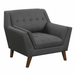 The sharp edges and flared legs of the HN Home Aalto Mid-Century Tufted Accent Chair add a touch of class to your home. This accent chair features a button tufted back and seat cushion and comes in optional fabric colors designed to match any color scheme.