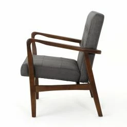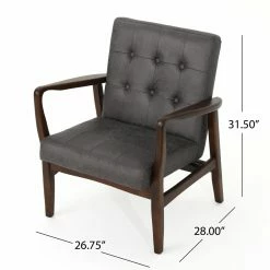 Retro style meets modern convenience in the design of the HN Home Adams Mid-Century Modern Tufted Microfiber Club Chair. Button-tufted details and an exposed birch wood frame with sloped arms and simple square legs give this cushy club chair a mid-century modern aesthetic. For effortless care, the tight seat and back cushions are upholstered with polyester microfiber fabric.
