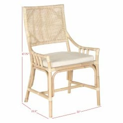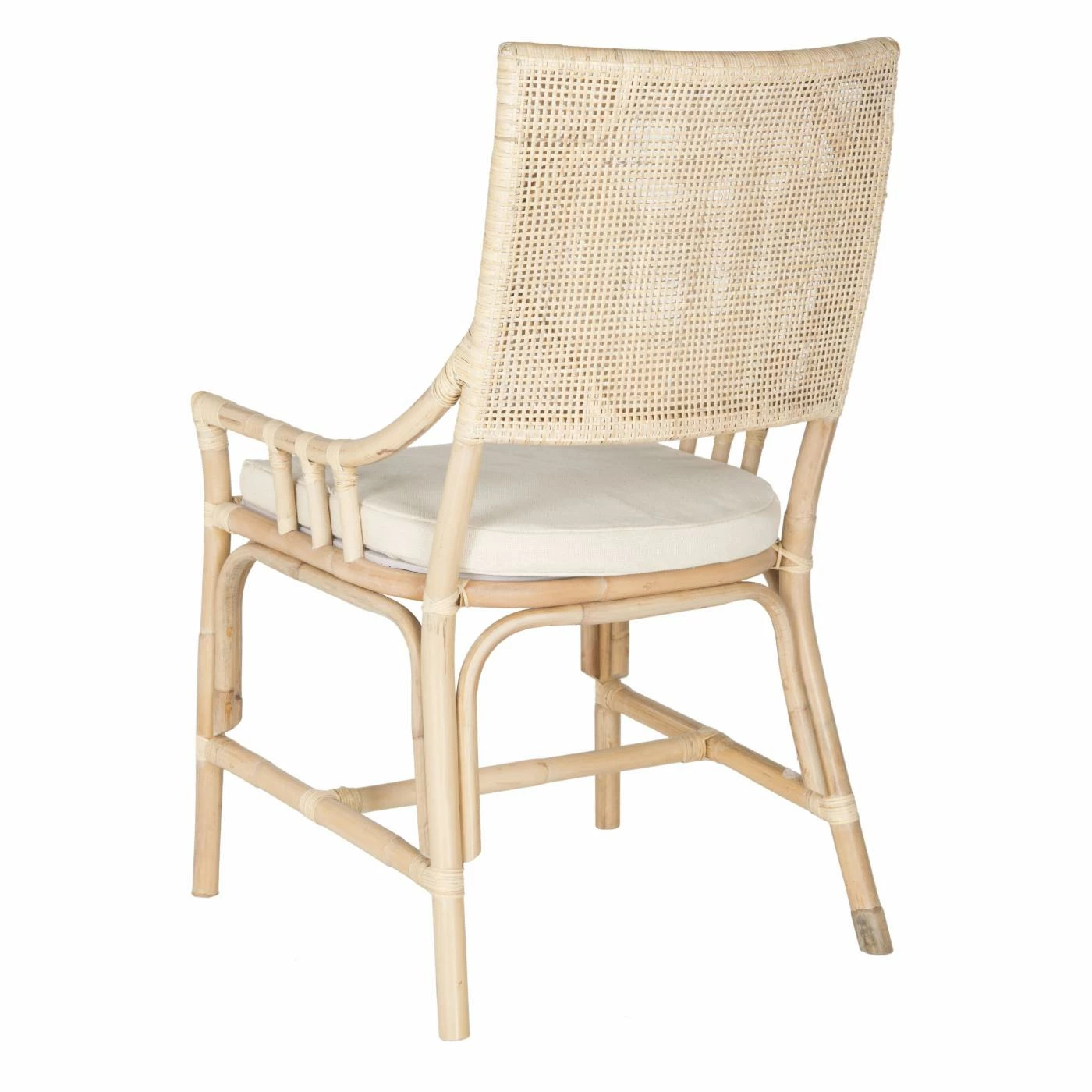 Introduce international flair into your dining room with the HN Home Dovestone Coastal Rattan Chair. Fine rattan, rawhide lacings, and a seat cushion upholstered in white cotton give this chair its casual-chic appeal. Caning details on the back and a natural finish throughout complete the look.