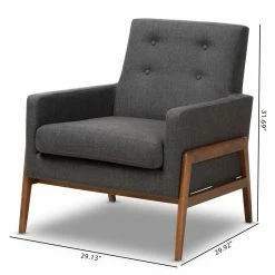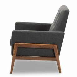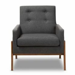 Upholstered in soft polyester in your choice of available color, the HN Home Erdem Mid-Century Modern Fabric Lounge Chair features button tufted accents for a classic mid-century look. A rubberwood frame with walnut finish adds to the appeal, while providing durable support for the design. This lounge chair includes plush foam padding for exceptional comfort.