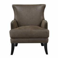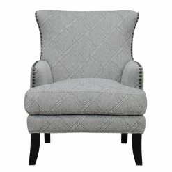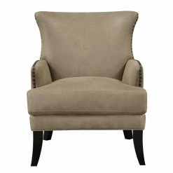 Add some transitional style to your home with the HN Home Greeley Transitional Nailhead Accent Chair. In is constructed of solid wood and features a nailhead trim along the arms and back. You can choose from the available fabric patterns, colors, and types to complete the perfect look for your living area.