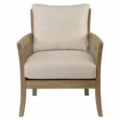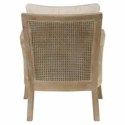 Bring a boho beach vibe to your space with the HN Home Martin Coastal Natural Armchairโs woven rattan wicker design. The strong rubber wood and compressed wood frame provides lasting strength and structure. The cushions are filled with comfortable dense fiber. The elegant off-white fabric upholstery finishes this chair with a refined touch.