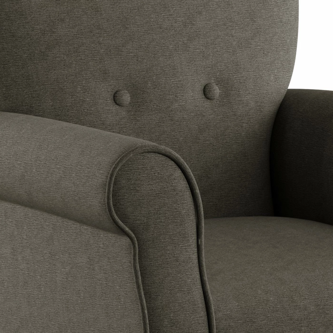 The arched back and button tufting of the HN Home Odessa Transitional Button Tufted Accent Chair provides a transitional look that can blend in to many different dΓ©cor styles. This arm chair is made of your choice of fabric pattern and color with wooden legs and frame. With comfort and class, the chair will add that final touch to make your house a home.