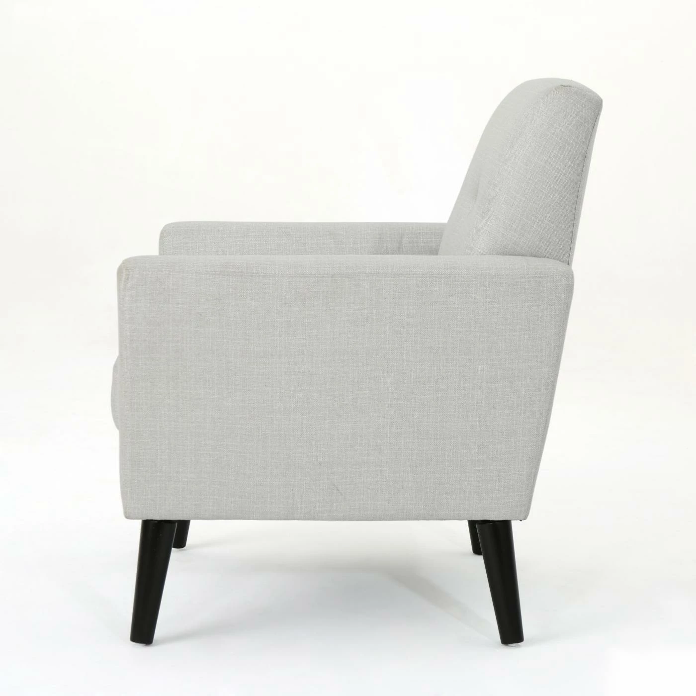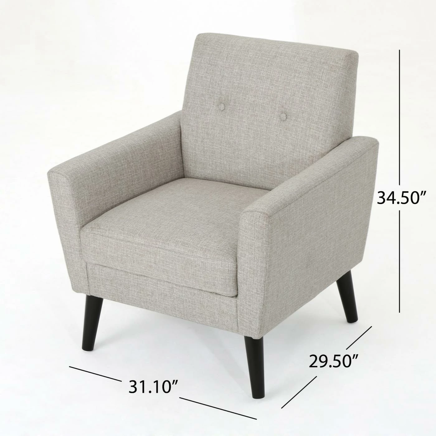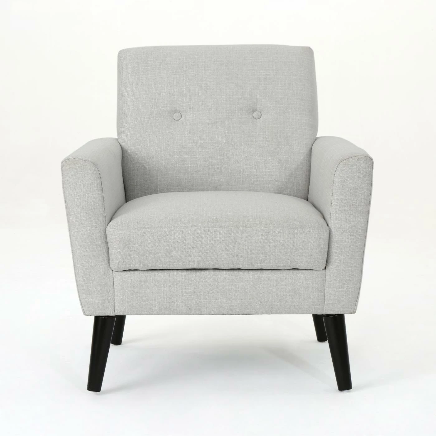 Maximize the mid-century modern appeal of your living space with the HN Home Renwick Mid-Century Modern Tufted Club Chair. With its flared arms and angled birch wood legs, the club chair reflects the design trends of the 1950s and 60s. For a final touch of retro style, the crisp fabric upholstery is embellished with two buttons.