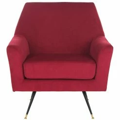 Introduce a bold retro accent to your room with the HN Home Sergeyevich Mid-Century Modern Velvet Retro Accent Chair. The sleek velvet upholstery boasts a rich maroon hue, drawing the eye and making it a focal point. The smooth lines keep it visually relaxing. Angled metal legs add vintage charm and keep the piece stable.