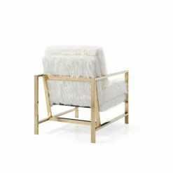 Even if the rest of your furniture is simple and subdues, the Hodedah Imports Glam Faux Fur Upholstered Accent Chair is the instant wow factor. This accent chair is full of glam, from the bright gold finish on the metal frame and arms to the white faux fur upholstery of the seat and back. The sponge padding adds comfort and support while you read, watch a movie, or chat with friends. Accent with a mirrored side table or tripod floor lamp.