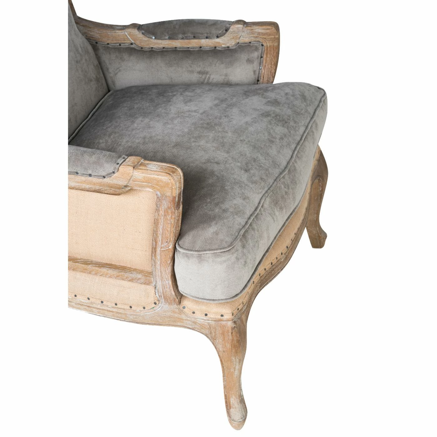 The Kosas Home Brittani Traditional Club Chair is the perfect spot to sink into morning, noon, or night. This elegant club chair features a French-inspired design with generous cushioning. Perfect for the living room, bedroom, or a cozy reading nook, this club chair is constructed with a strong and durable wood frame complemented by gray upholstery. Nailhead trim and distressed cabriole legs accentuate the traditional style, while burlap details provide a rustic flair and added visual interest.