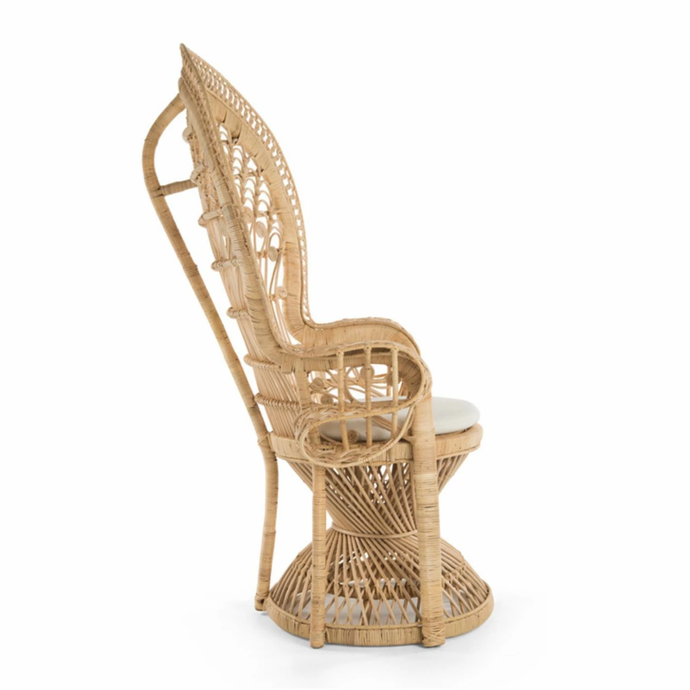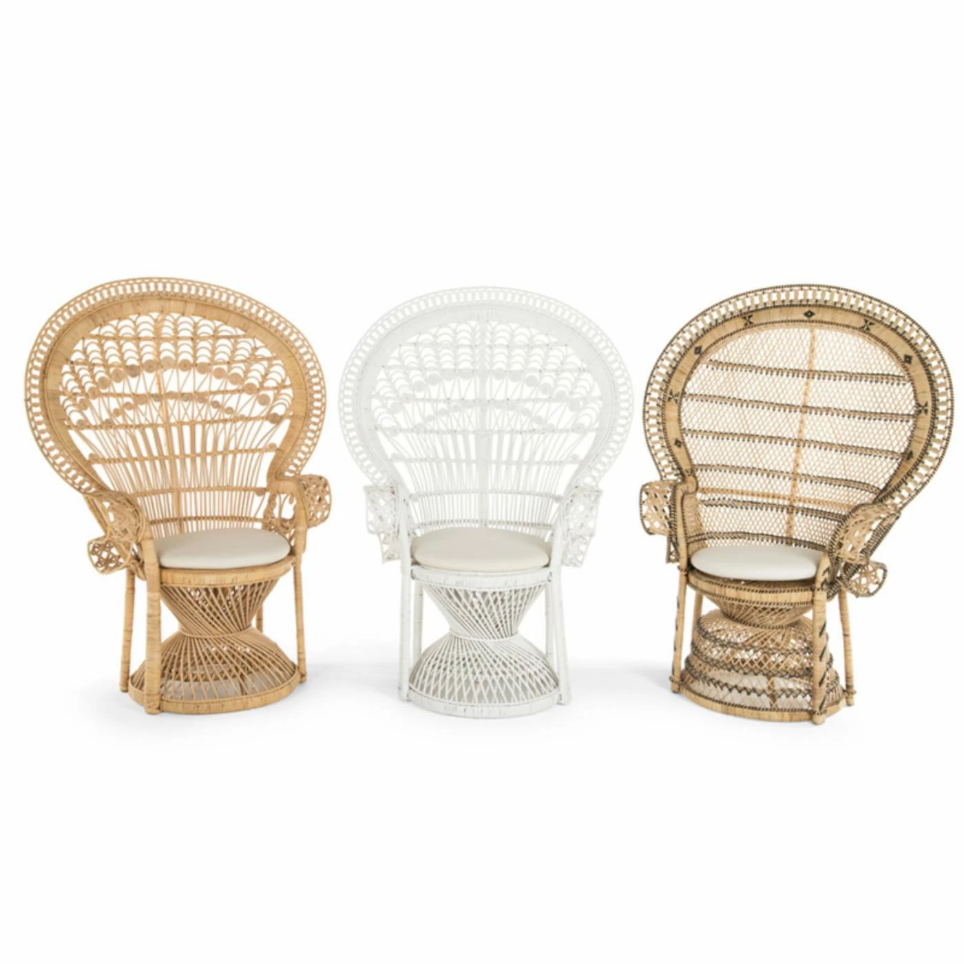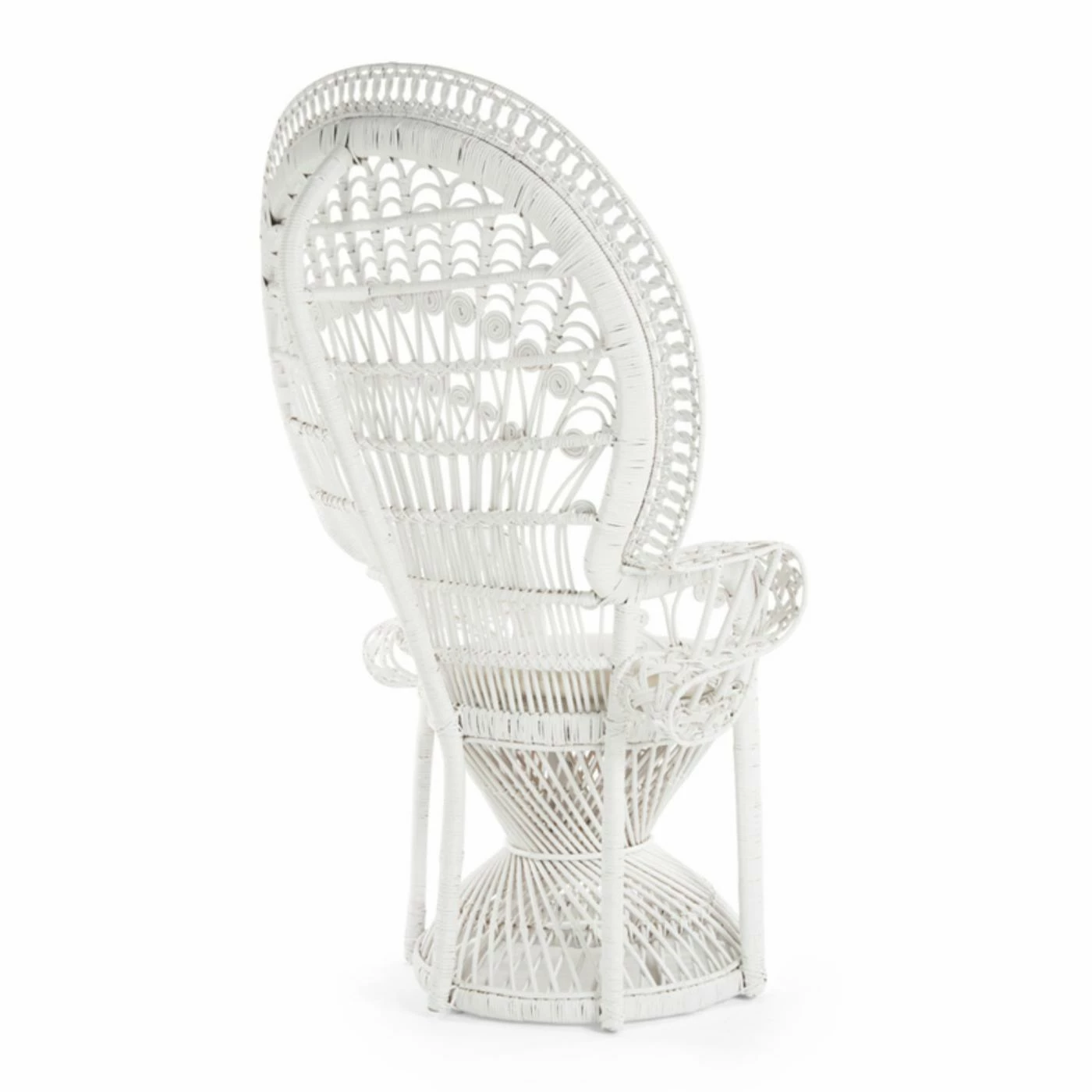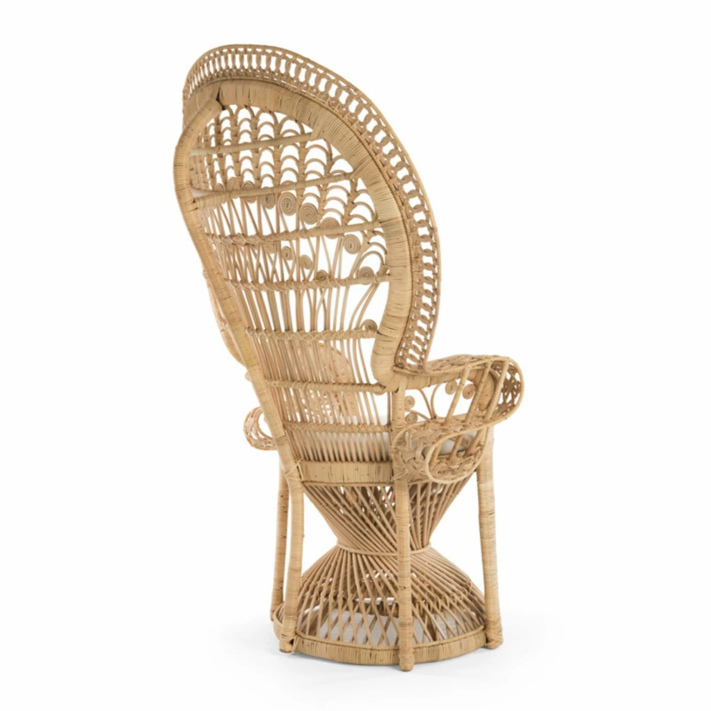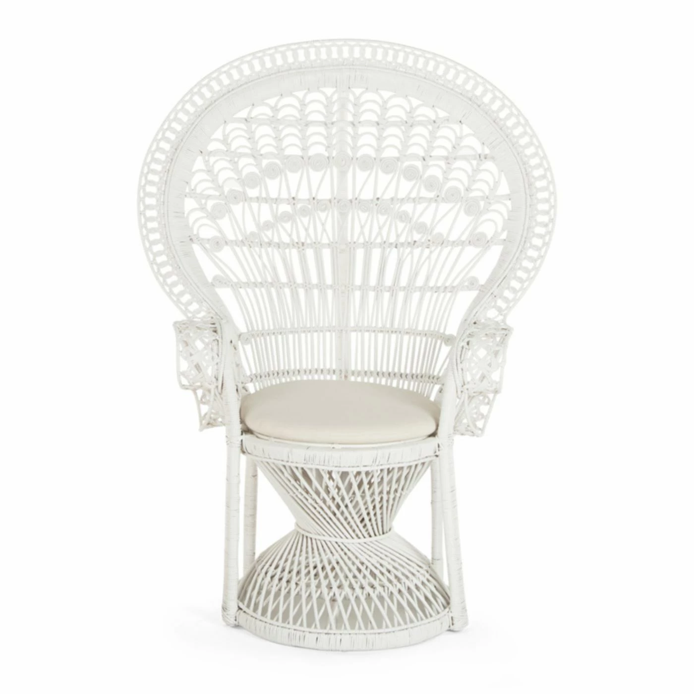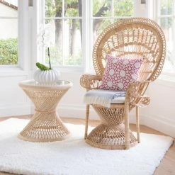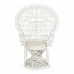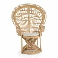 With royal Eastern origins and a resurgence from its American popularity in the 1960’s and ’70s, the KOUBOO Grand Peacock Rattan Accent Chairโs dramatic-yet-delicate silhouette isnโt just for the bohemian enclave. This throne-like seat is right at home in Scandinavian, eclectic modern, and millennial pink atmospheres. Itโs frame is hand-crafted with natural-grown rattan, and boasts a sweeping arched back, peacock-feather-inspired weaving, artful armrests, and a spiraled pedestal base. Choose from available color options to make it yours. Cushion is included. No assembly required.
