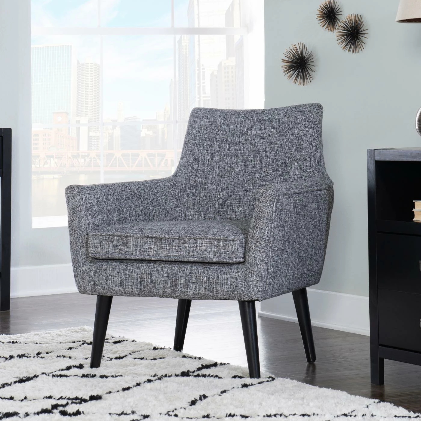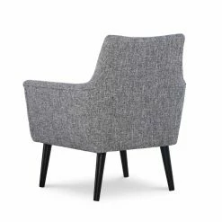 Channeling minimalist Mid-century modern style, the Linon Ava Black Chair features a button-tufted back and angled wooden legs. This chair features a thick seat cushion with a piped edge for tailored comfort. Choose from available upholstery colors to best coordinate with your space.