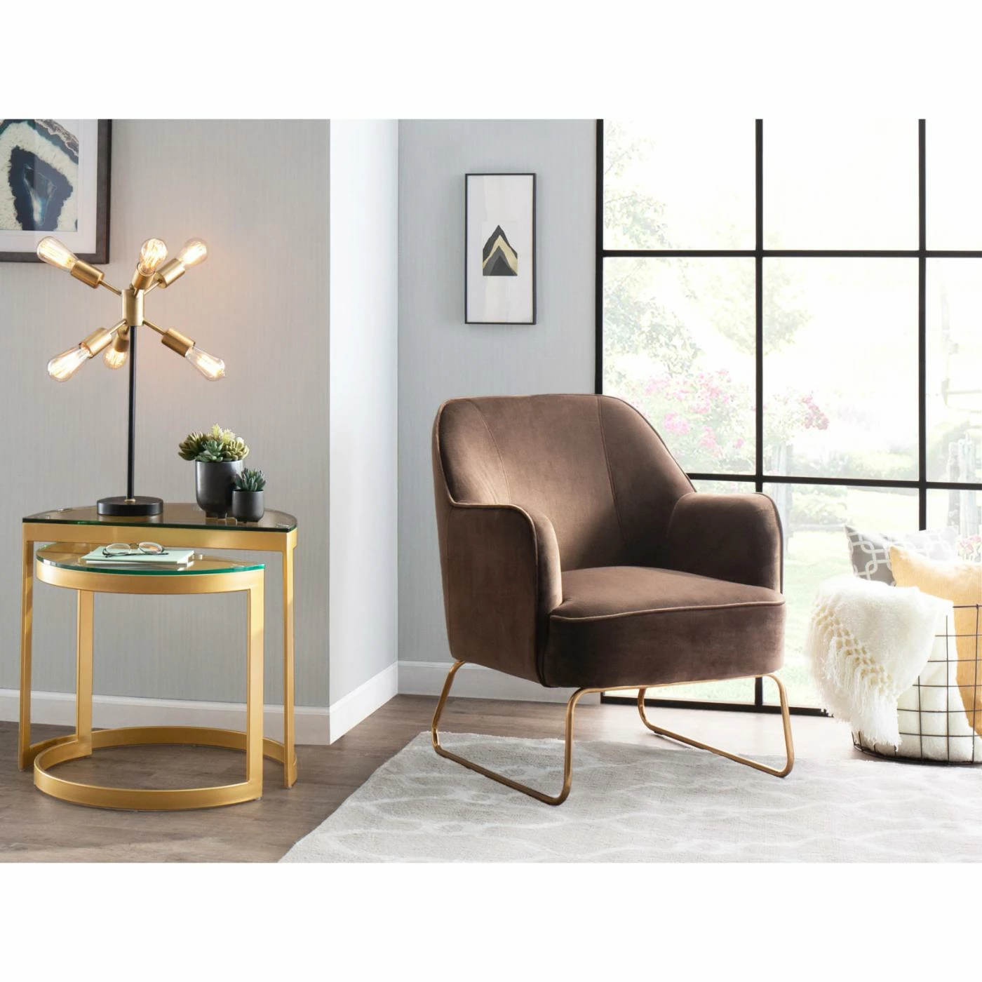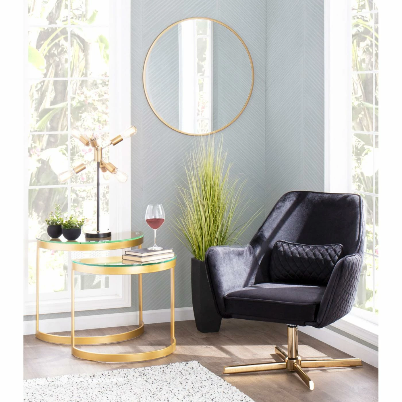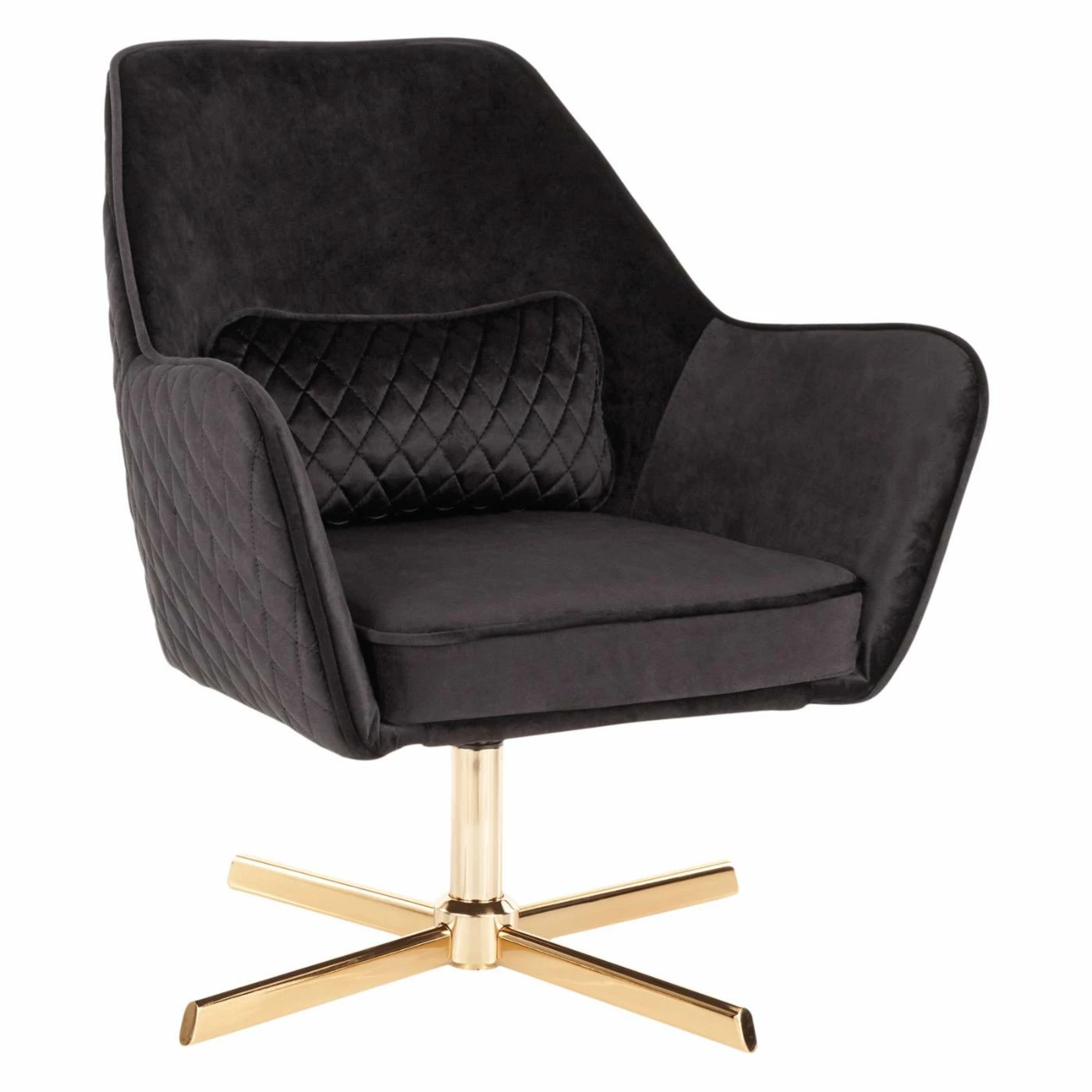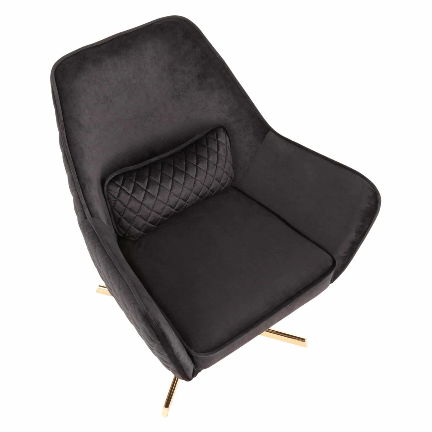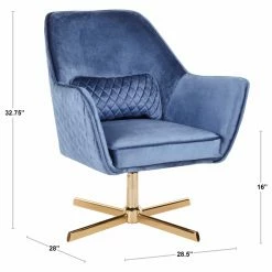 Whether you’re looking for a chic living room accent or a home-office upgrade, the LumiSource Diana Velvet Lounge Chair has got you covered. This chair features a feathery-soft velvet material in your choice of available hues. The sturdy metal frame splits into a four-star base for strong and stable support. A high-back design and tall armrests ensure luxurious lounging with every single sit. A lower back cushion with decorative stitching is included for your comfort. This chair comes full-circle with a 360-degree swivel design.