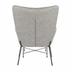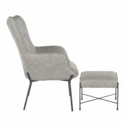 Create a space to kick back and relax with the LumiSource Izzy Industrial Faux Leather Lounge Chair with Ottoman. Each piece features a metal frame and legs in a black finish. The padded seat and ottoman are upholstered in gray faux leather.