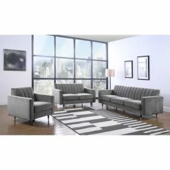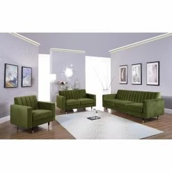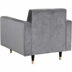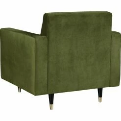 For a mid-century design with a contemporary twist, the Meridian Furniture Inc Lola Upholstered Club Chair boasts an angled, channel tufted backrest, track arms, and wood dowel legs that end in gold-finished steel ferrules. This club chair is upholstered in sumptuous velvet. Customize the look by choosing from available velvet colors.