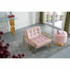 Complete your modern living room with the Meridian Furniture Inc Pierre Accent Chair. Velvet upholstery in your choice of available colors make it easy to complement your existing home style, while the fetching gold finish on the stainless steel legs and arms add a glamorous touch youโll love. Thick foam cushions create a comfortable seat thatโll surely be a favorite. Button tufting on the seat and back complete the look and lend additional posh fashion.