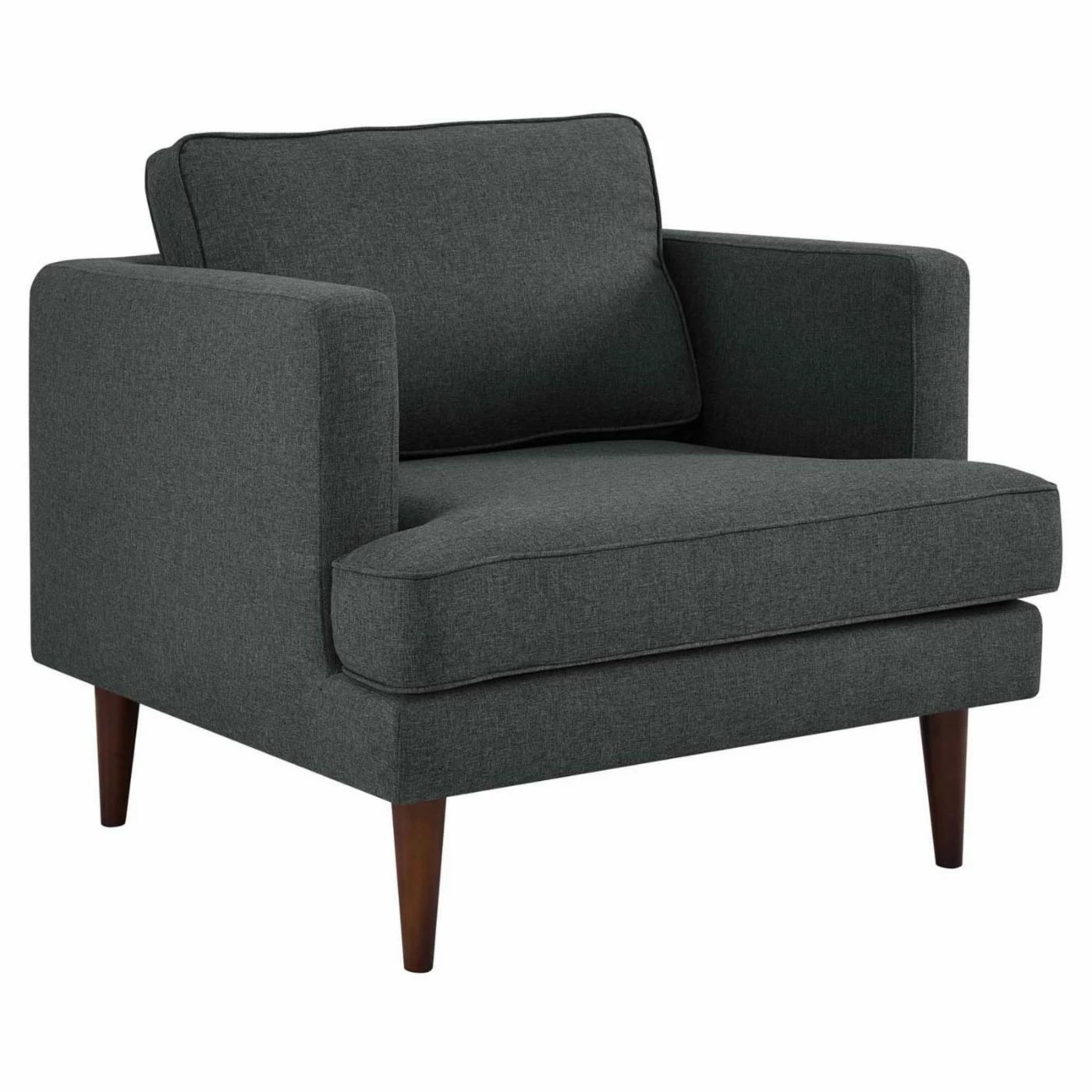 With a comfortable and streamlined design, the Modway Agile Upholstered Fabric Armchair lends any room in your home a welcoming seating space. This modern armchair boasts fabric upholstery featured in your choice of available color that covers densely padded foam cushions. Tapered wood legs accented with non-marking foot caps give it a mid-century modern vibe along with added functionality.