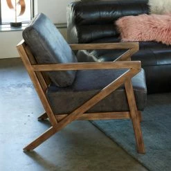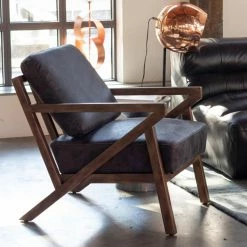 Finish off your mid-century modern seating area with the Moes Home Collection Drexel Arm Chair. The rubberwood frame shows off dramatic diagonals inspired by authentic furnishings from the 1950s and 60s. Top-grain leather upholstery and thick foam cushions give the chair a luxurious look and feel. Choose from available upholstery colors.