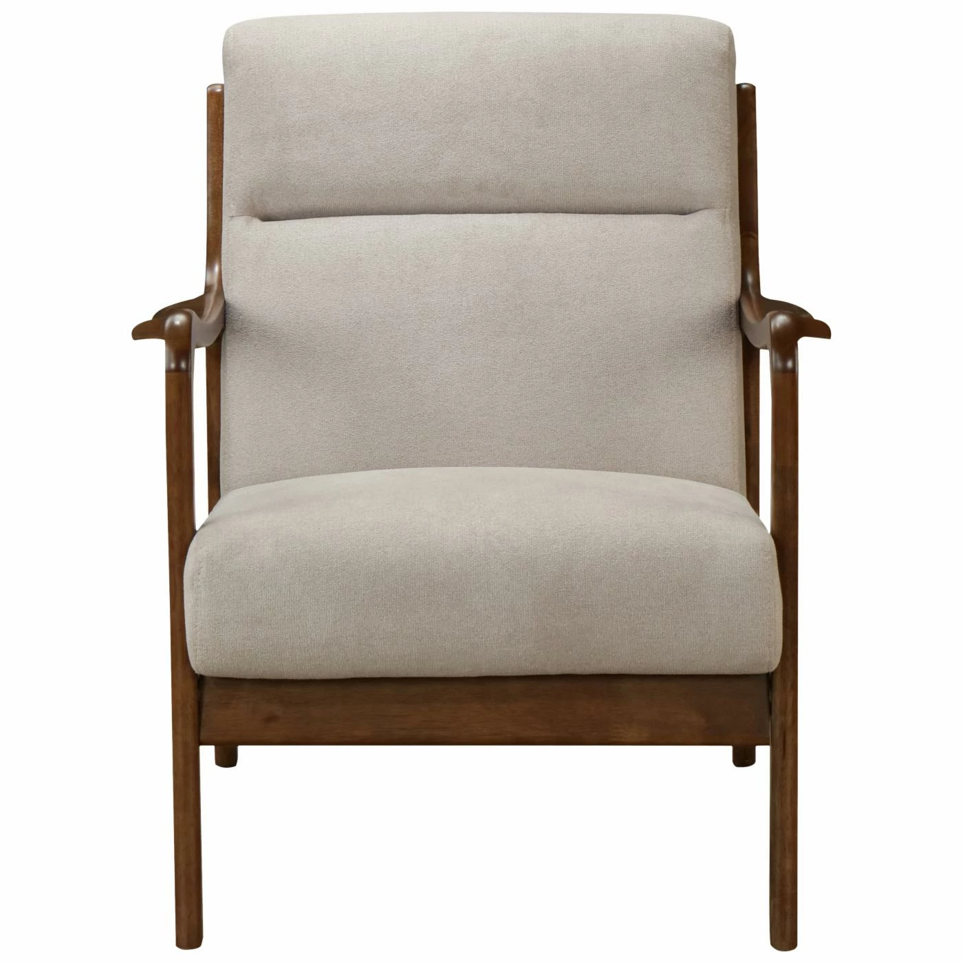 Inspired by 1960s style, the New Pacific Direct Inc Anton Upholstered Arm Chair is a sleek, sophisticated addition to any living room set. The wood frame is in a warm, dark walnut finish. The plush padded seats are comfortable and easy to maintain. Gently sloped wooden arms provide support, while adding to the chair’s mid-century modern silhouette. Choose from available fabric colors to find the New Pacific Direct Inc Anton Upholstered Arm Chair that works best for your living room or family room.