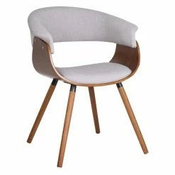 Relaxation comes easy to the !nspire Mid Century Side Chair with Wood Legs. With its curved back and seat, and grey upholstered cushions, this chair surrounds you in comfort. Most impressively, it does this while also balancing casual and formal details so it can complement any dΓ©cor. Looking for something to enhance your living room arrangement? Done. How about the bedroom or the end of your dining table? Perfect! Its distinct look brings personality to any setting and itβs available in your choice of soft fabric upholstery so it can coordinate or stand out from other furnishings. As sturdy as it is stylish, this chairβs solid rubberwood legs in walnut finish can support up to 300 lbs. Some assembly is required.