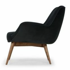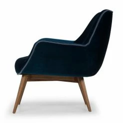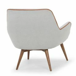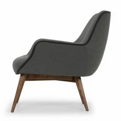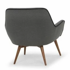 Faux leather welted trim updates the mid-century mod appeal of the Nuevo Gretchen Lounge Chair. The classic bucket chair look of this lounge chair is made luxurious by its generous, tight seat and back, plus flared arms. It’s upholstered in your choice of available colorway. Wooden post legs are tapered and flared to enhance the mid-century design.