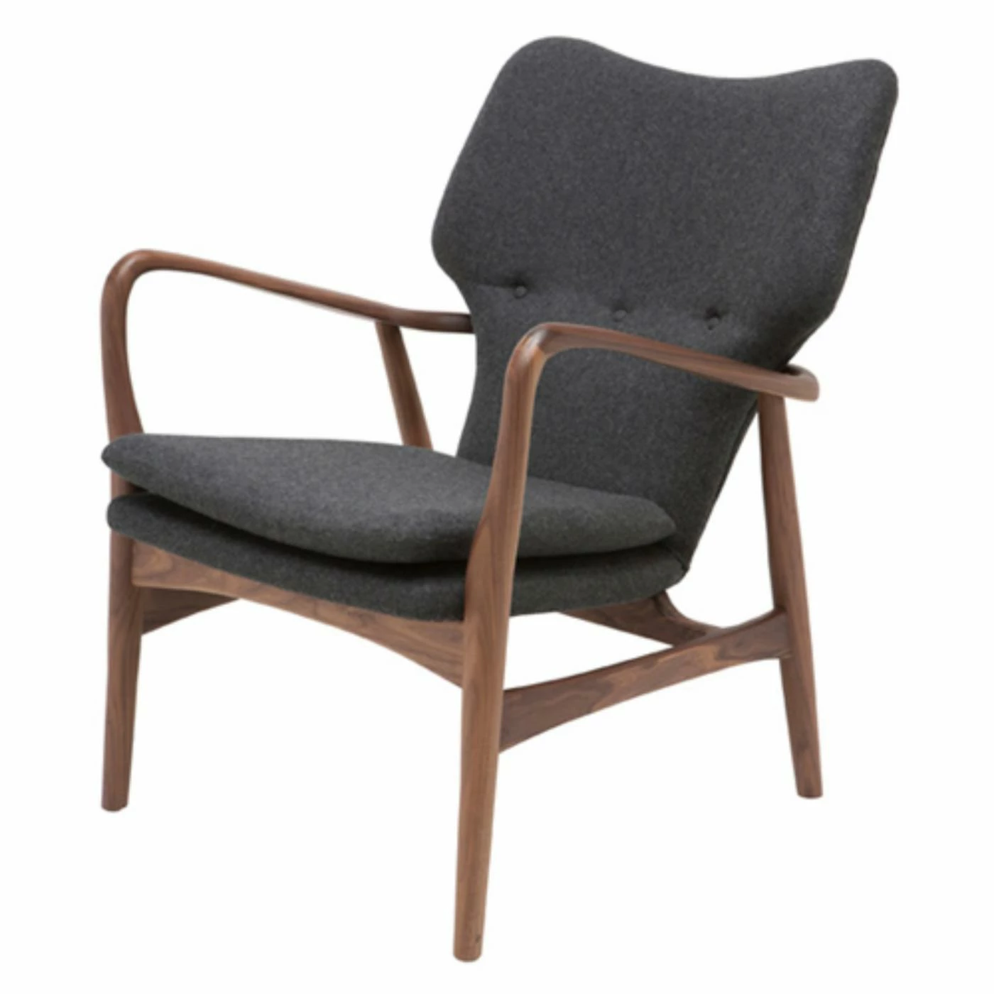 With the Nuevo Patrik American Ash-Painted Walnut Lounge Chair – Dark Grey Tweed your home just picked up some cool points. This contemporary chair has a high-quality fabric upholstery for great comfort. It is all held together by a durable wood frame with a rich walnut finish.