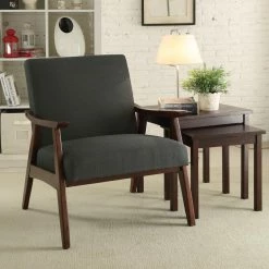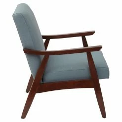The OSP Home Furnishings Davis Arm Chair – Linen brings cozy mid-century style to your home. This sleek arm chair rests on a durable wood frame. Thick foam cushions ensure comfy seating. The fabric upholstery of this arm chair comes in your choice of available color.