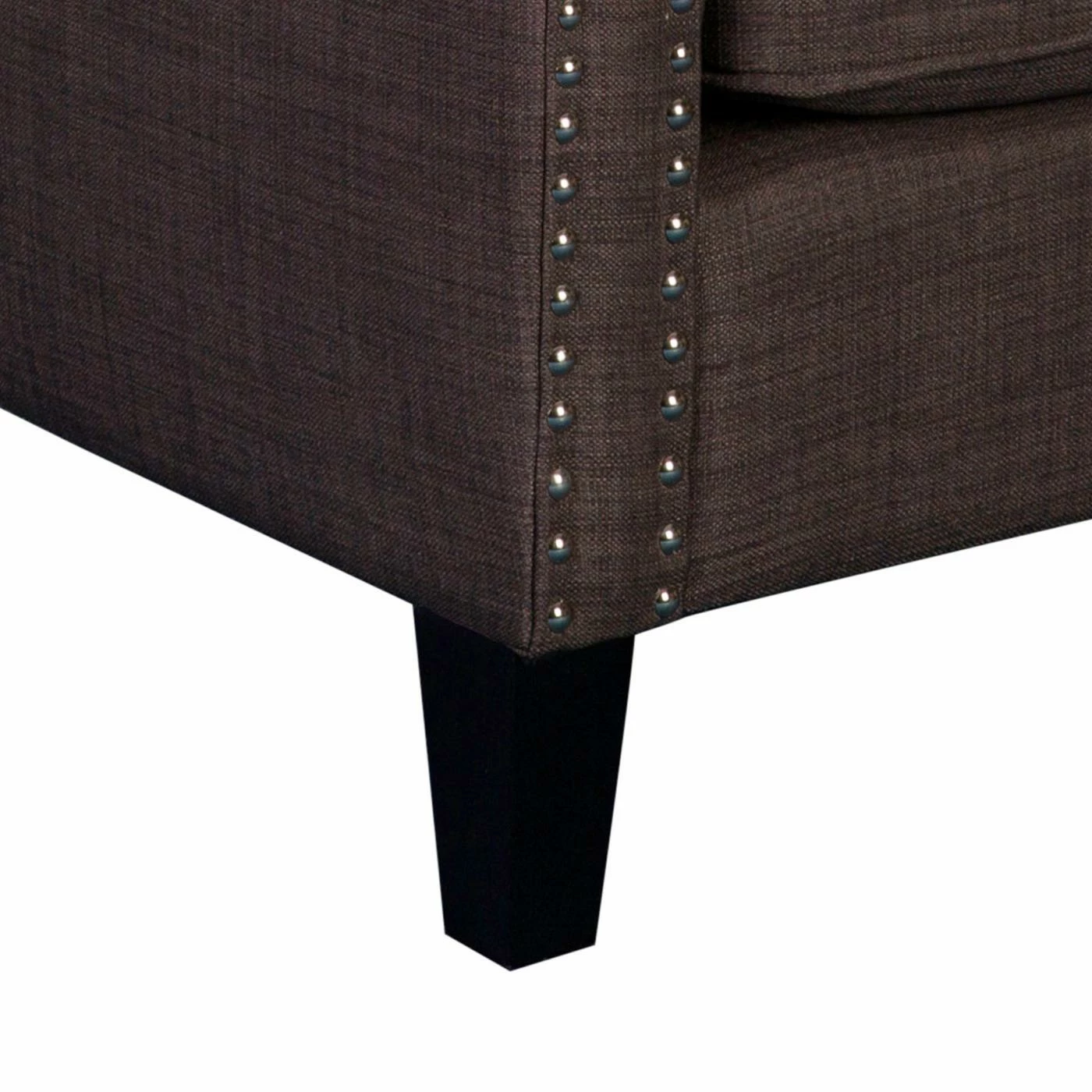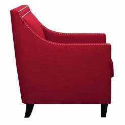 The Picket House Furnishings Erica Chair with Chrome Nailhead Trim is a sophisticated design available in a variety of energetic colors to add charisma to your living room or office. This vibrant take on the traditional armchair retains its vintage flare and the quality construction that comes with it. The chair is crafted from the perfect mix of solid hardwood and MDF with pocket coils and thick foam cushioning wrapped in easy-to-clean polyester fabric. The wood legs come in a dark espresso and the trim of the chair is outlined in polished, hand-applied nail heads.