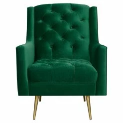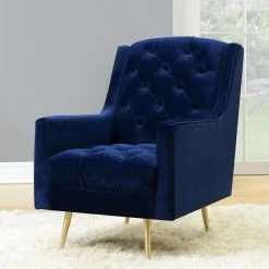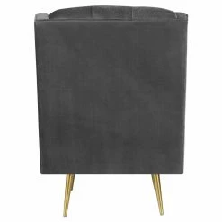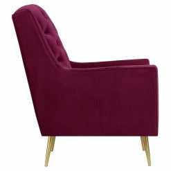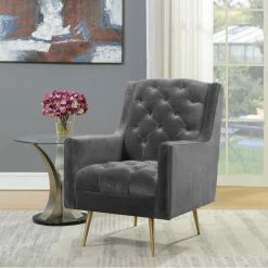 Tufted details on the seat and back of the Picket House Furnishings Reese Tufted Arm Chair add a modern design to your living room dรฉcor. A little bit retro, this chair features straight arms and a subtle wingback design. The gold metal tapered legs give it an updated look. Choose from available fabric colors to suit your taste.