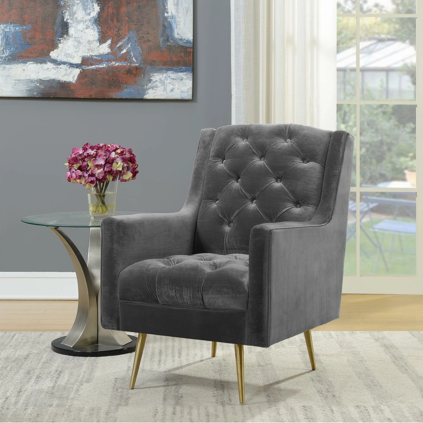 - Button-tufted seat and back