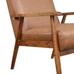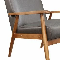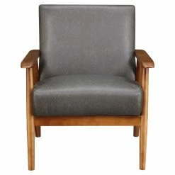 Patterned after the simple, iconic chair styles of the mid-20th century, the Right2Home Wood Framed Faux Leather Accent Club Chair offers both great bones and posh padding. Faux leather features slight color variations that create a storied, lived-in look. The frame features planks of select hardwood solids and dowel legs. Experience supreme support with a sinuous spring base and webbing seat foundation.