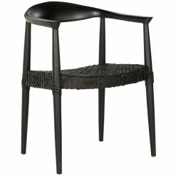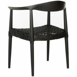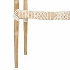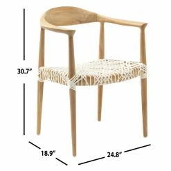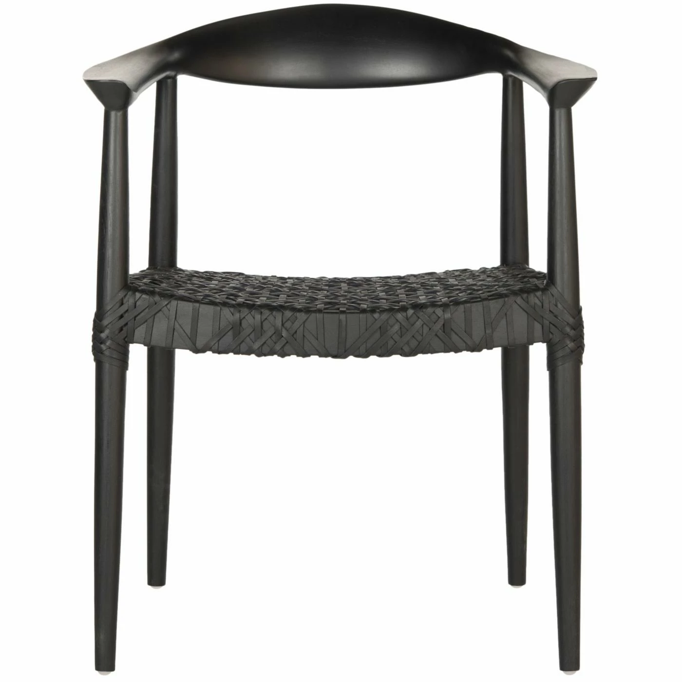 The Safavieh Bandelier Arm Chair exudes the nuances of mid-century modern style thanks to its sleek spindle legs and curvy silhouette on the back. This bold arm chair is crafted from reclaimed teak wood and comes in your choice of available finish. The sturdy seat is covered with woven strips of leather for a luxurious texture.