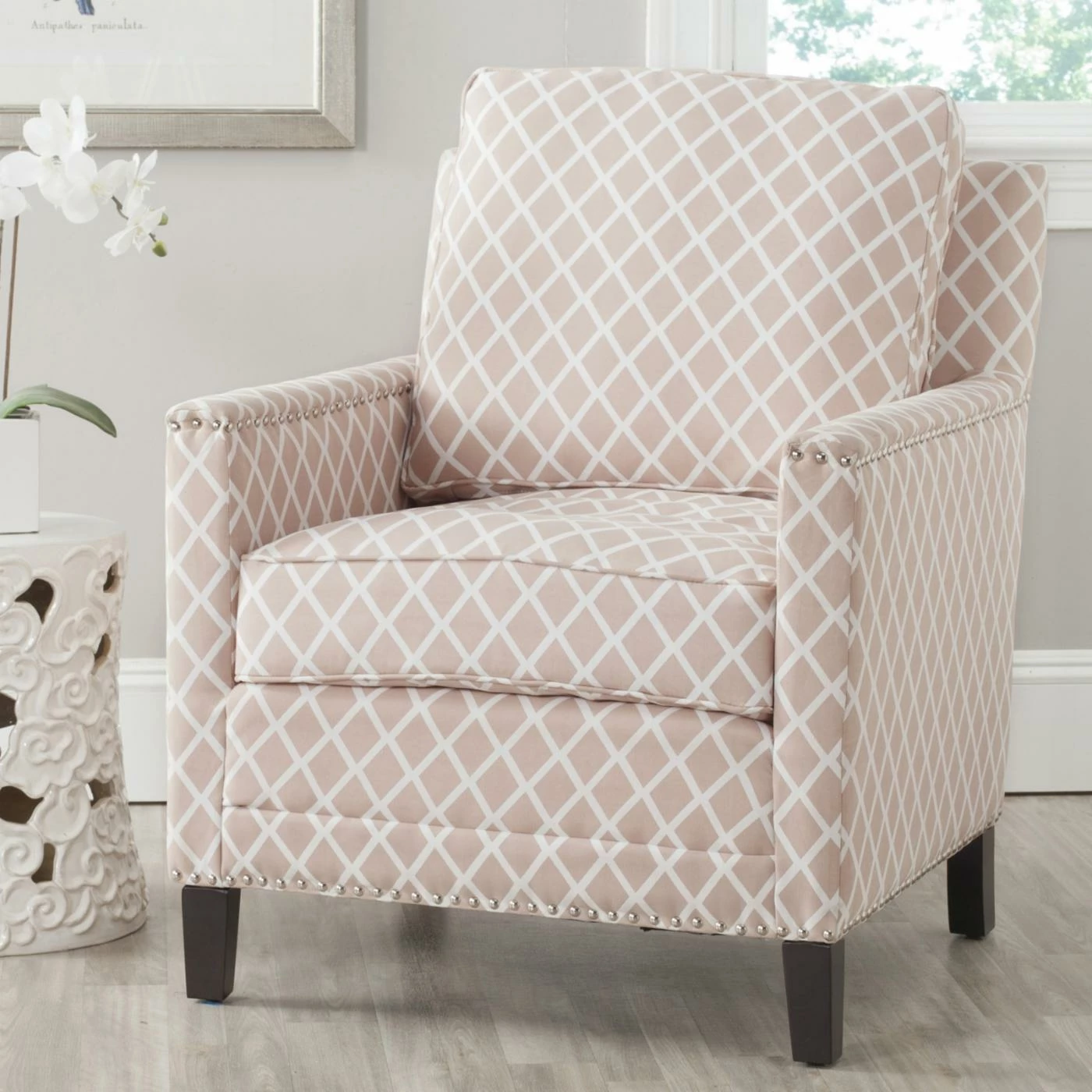 The Safavieh Buckler Plaid Club Chair is ideal for transitional styles with a charming plaid fabric upholstery in your choice of available color. The diagonal plaid pattern lends this comfortable club chair a timeless look, while silver nailhead trim brings it a chic touch. The durable legs are constructed of birch wood with a dark espresso finish for a bold contrast.