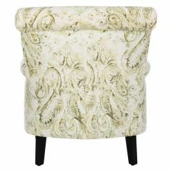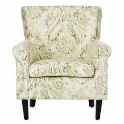 The Safavieh Hazina Club Chair isn’t your grandmother’s crewel print armchair, but it does convey an old-world sense of charm while flaunting an updated silhouette. Upholstered in a cotton-linen blend fabric, it features red, sage greens, and sweet blue florals against a white ground. Birch legs wear a dark brown finish.