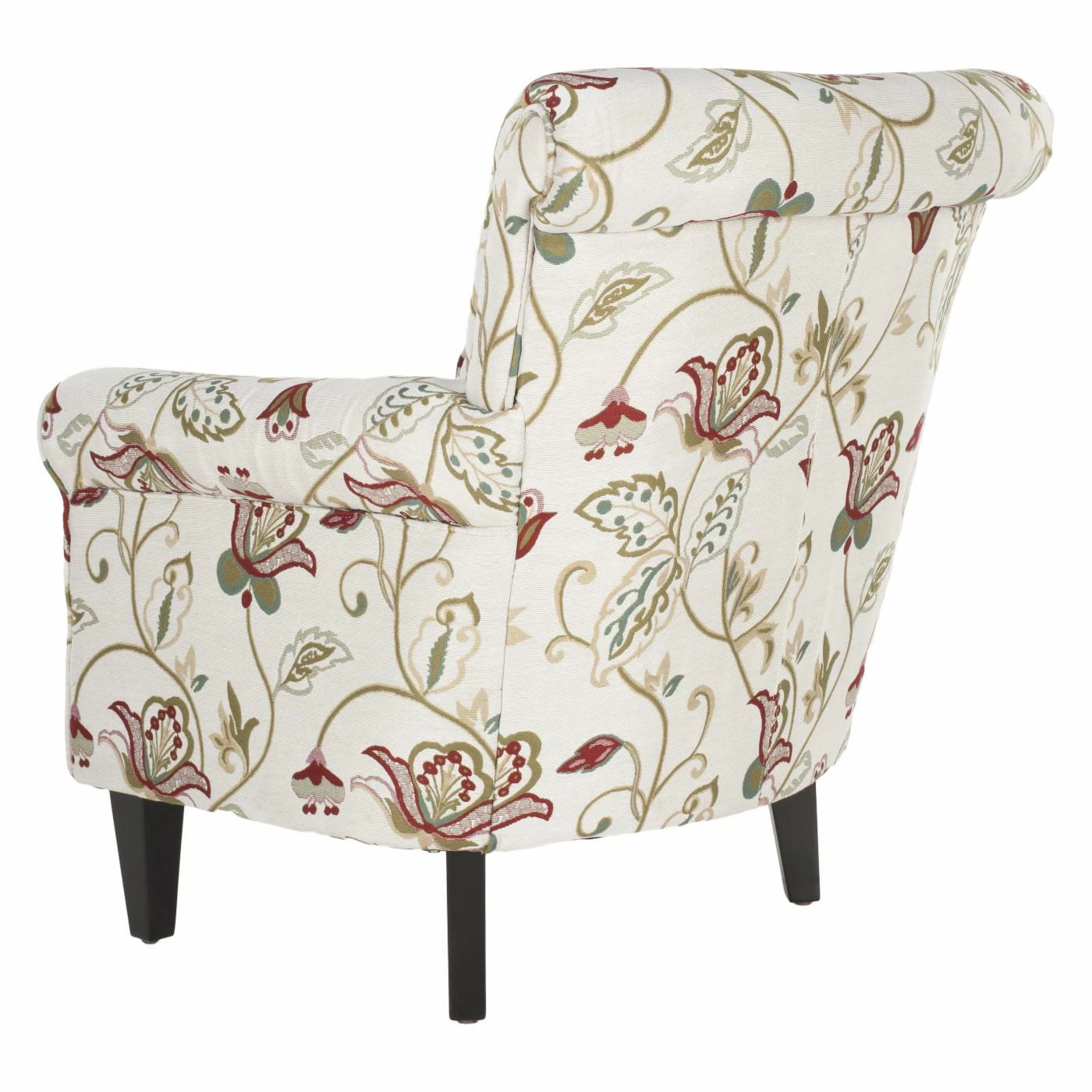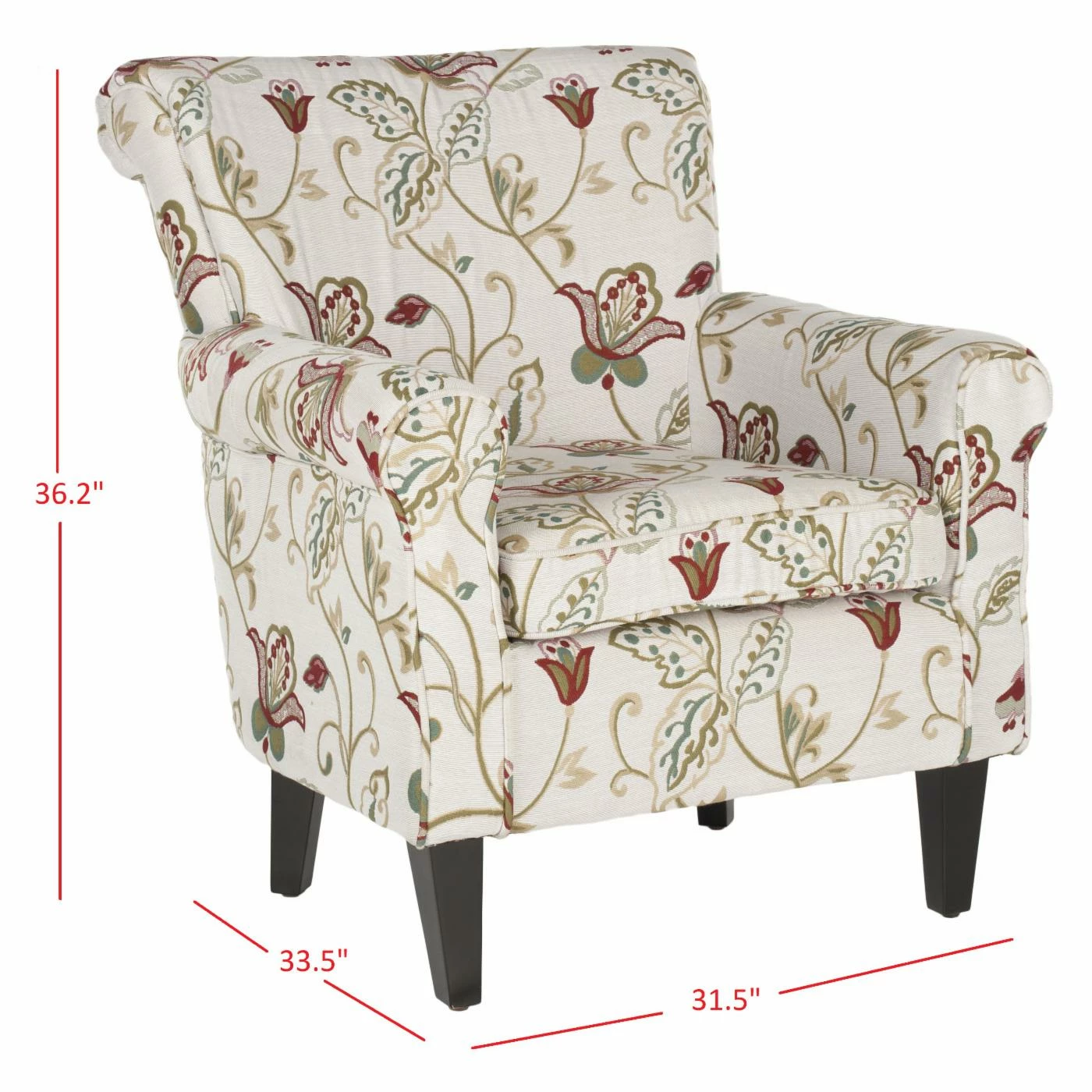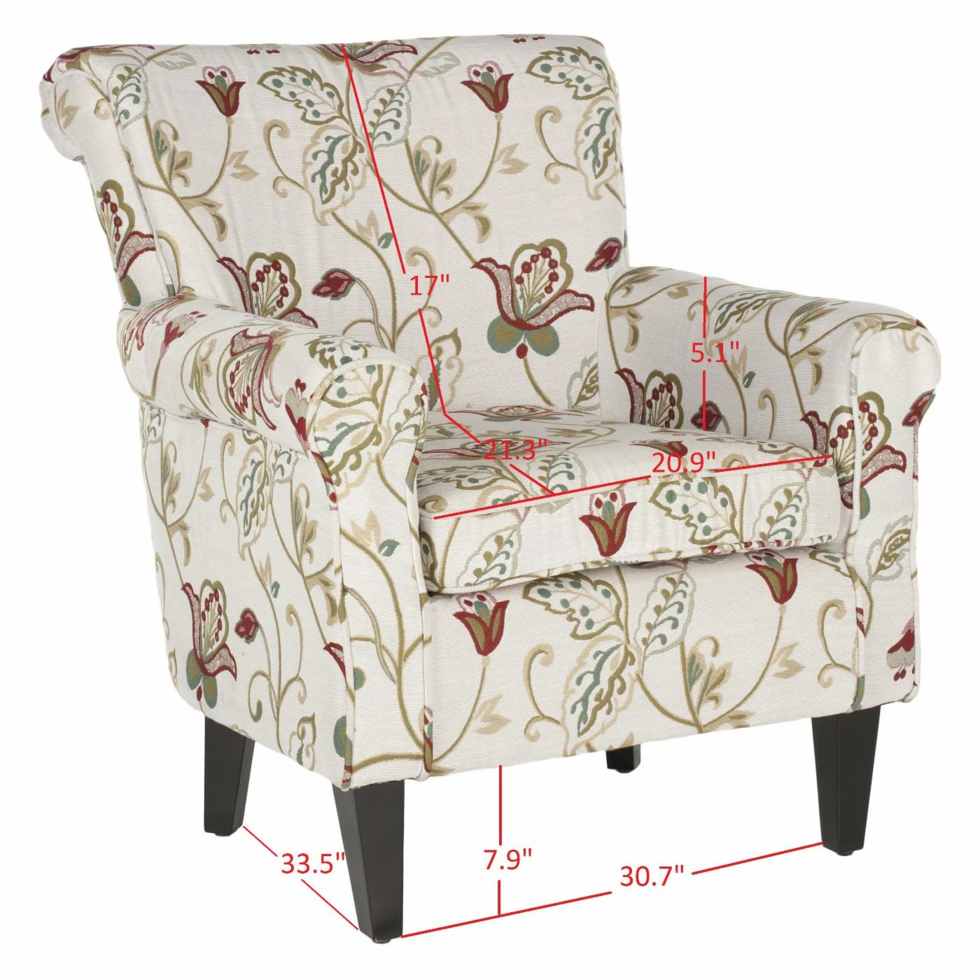 Classic, rolled arms and a tight back give the Safavieh Hazina Club Chair with Crewel Print its traditional design. A timeless red and green crewel print on natural cotton and linen blend upholstery hits all the style notes. This cozy club chair is a natural choice for your living room, family room, or bedroom suite.