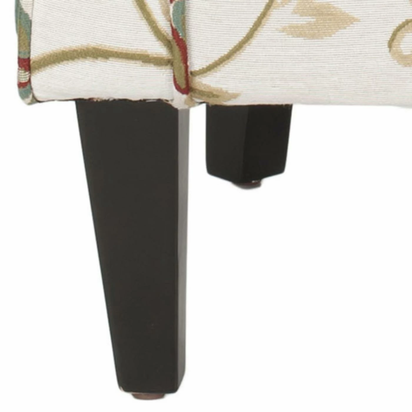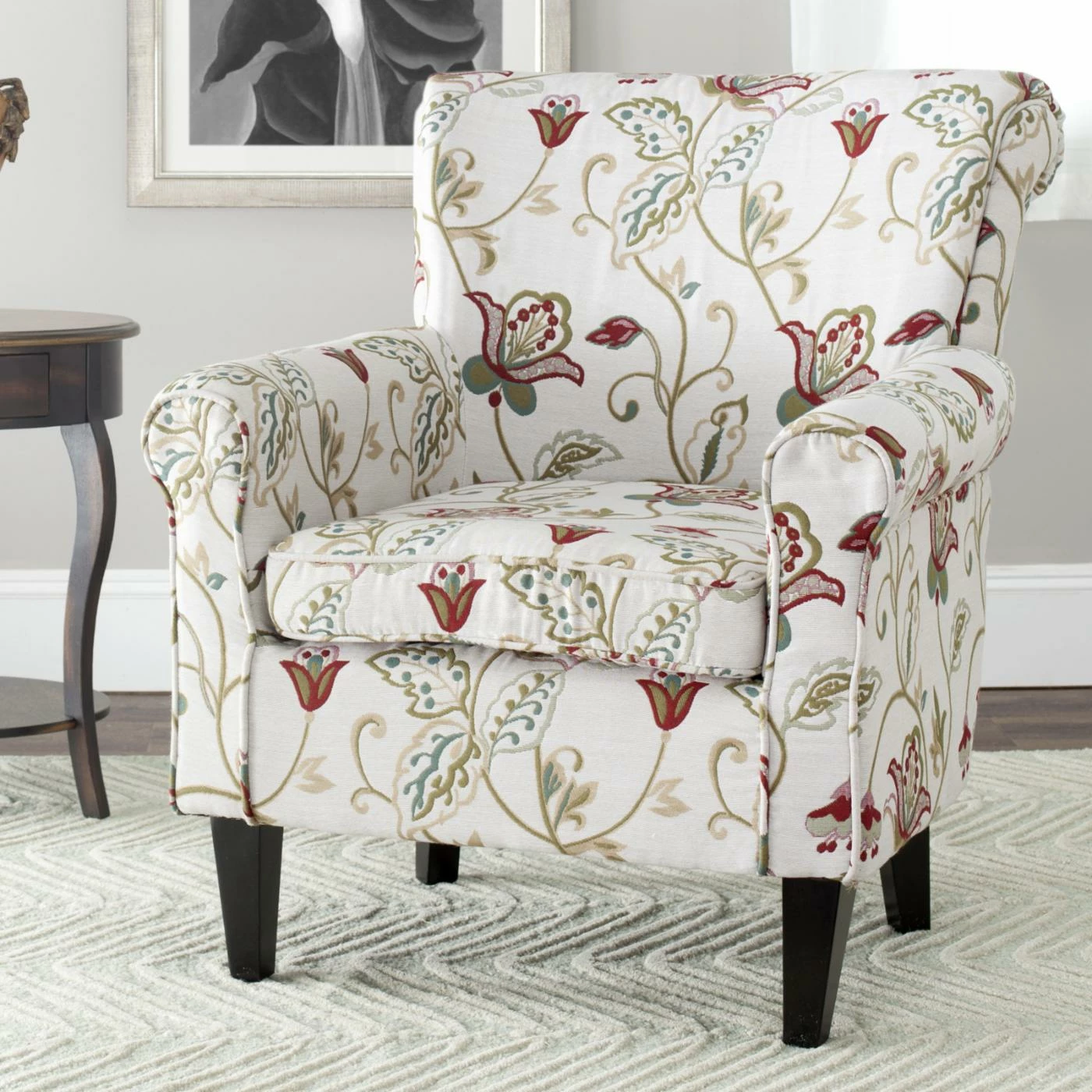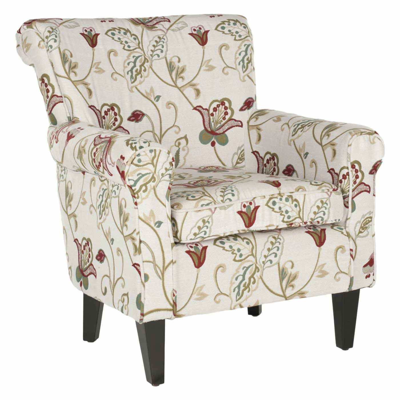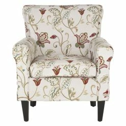 Classic, rolled arms and a tight back give the Safavieh Hazina Club Chair with Crewel Print its traditional design. A timeless red and green crewel print on natural cotton and linen blend upholstery hits all the style notes. This cozy club chair is a natural choice for your living room, family room, or bedroom suite.
