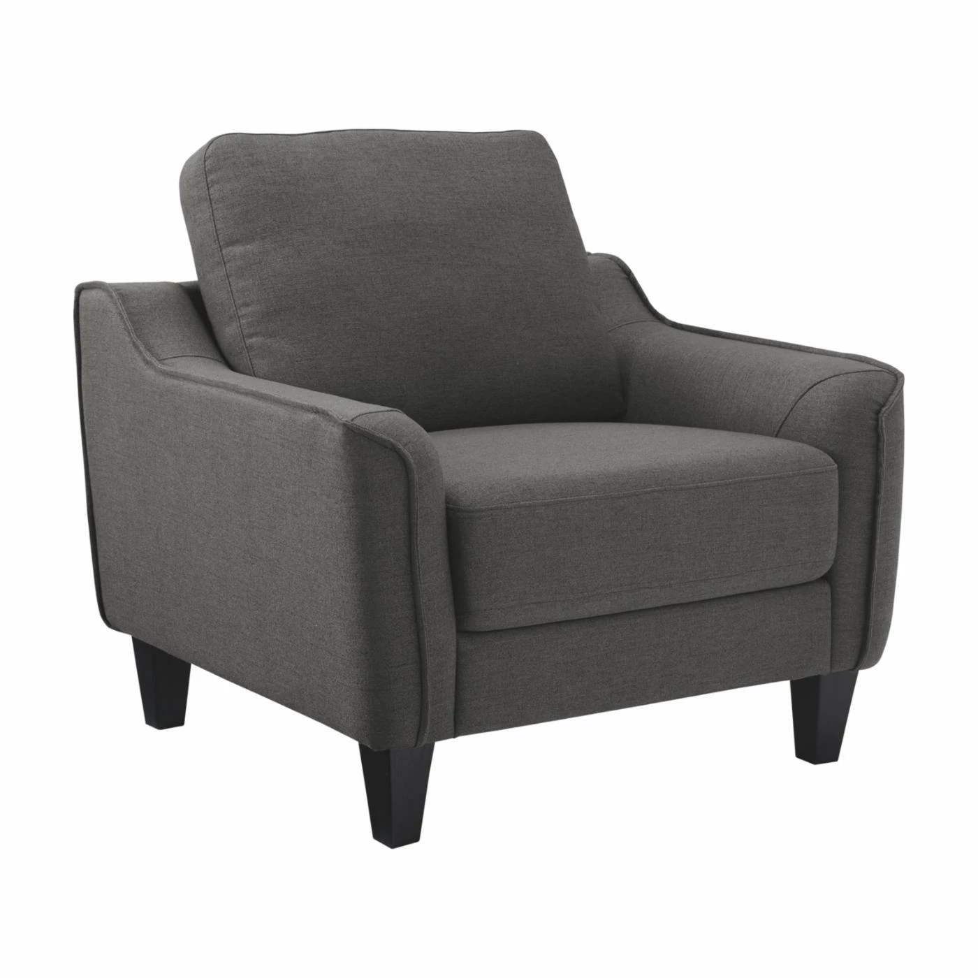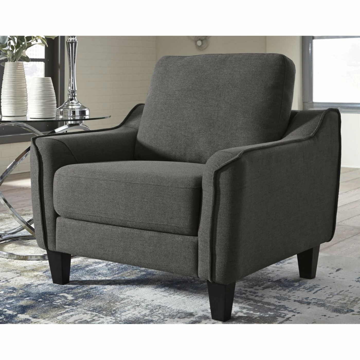 Every night feels like Friday night with the Signature Design by Ashley Jarreau Club Chair. Clean, contemporary lines and smooth, supple padding define this lounge chair. Polyester fabric upholstery in your choice of available color goes with a range of styles and is accented by pronounced seams. Tapered block wooden feet have a black finish. Whether your space is large or small, this club chair offers a brilliant combination of style and comfort.